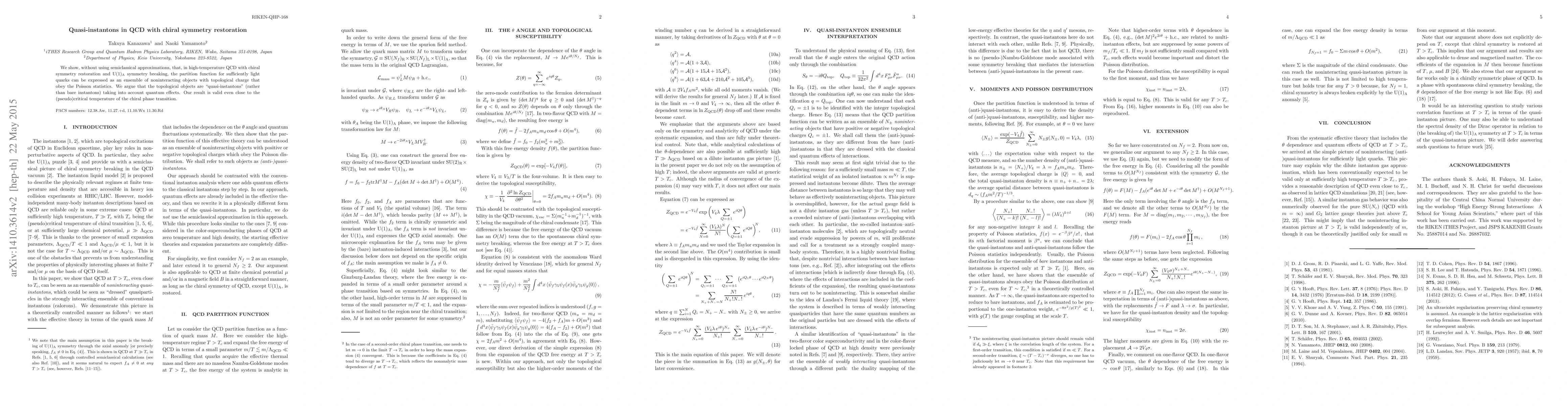 This paper demonstrates that, in high-temperature QCD with chiral symmetry restoration, the partition function for light quarks can be represented by quasi-instantons obeying Poisson statistics, without relying on semiclassical approximations, even near the chiral phase transition. These quasi-instantons account for quantum effects in place of bare instantons.