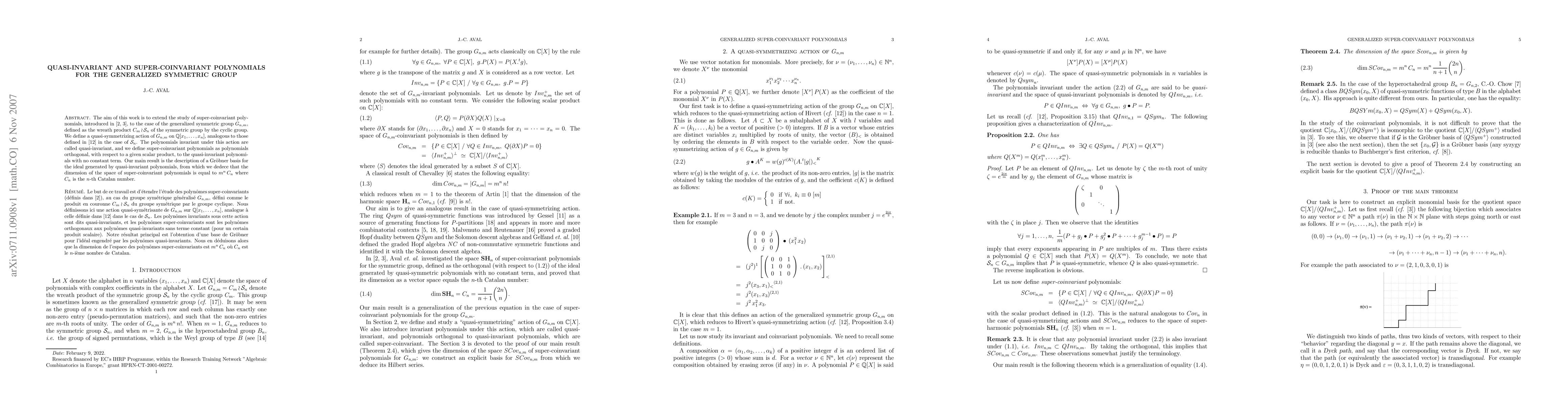 The aim of this work is to extend the study of super-coinvariant polynomials, to the case of the generalized symmetric group $G_{n,m}$, defined as the wreath product $C_m\wr\S_n$ of the symmetric group by the cyclic group. We define a quasi-symmetrizing action of $G_{n,m}$ on $\Q[x_1,...,x_n]$, analogous to those defined by Hivert in the case of $\S_n$. The polynomials invariant under this action are called quasi-invariant, and we define super-coinvariant polynomials as polynomials orthogonal, with respect to a given scalar product, to the quasi-invariant polynomials with no constant term. Our main result is the description of a Gr\"obner basis for the ideal generated by quasi-invariant polynomials, from which we dedece that the dimension of the space of super-coinvariant polynomials is equal to $m^n C_n$ where $C_n$ is the $n$-th Catalan number.