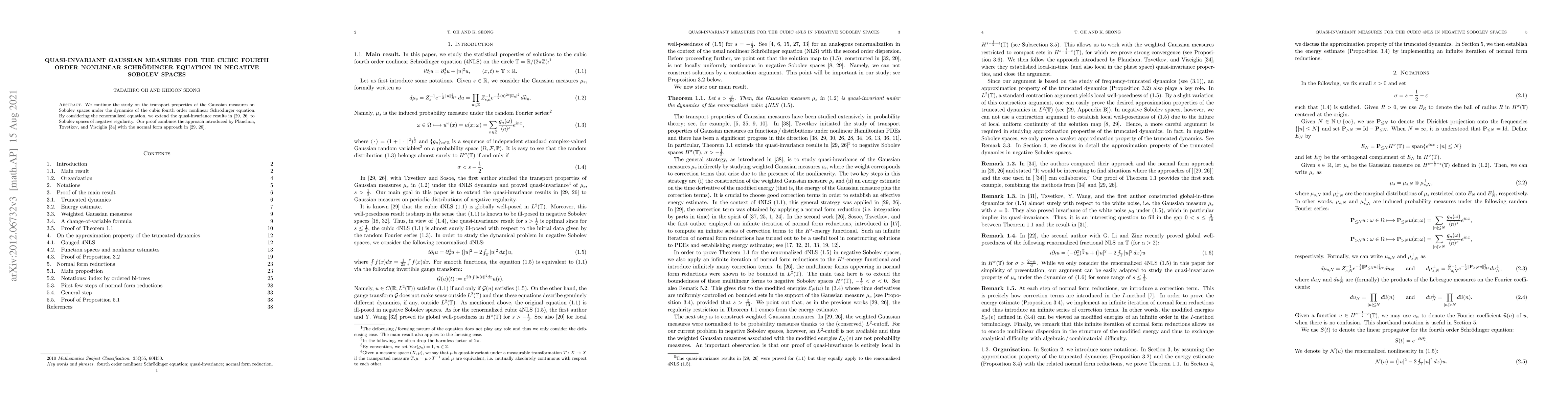 This paper extends quasi-invariant properties of Gaussian measures for the cubic fourth order nonlinear Schrödinger equation to negative Sobolev spaces, employing a combination of renormalization techniques and the normal form approach. The study builds on previous results and integrates methods from Planchon, Tzvetkov, and Visciglia.