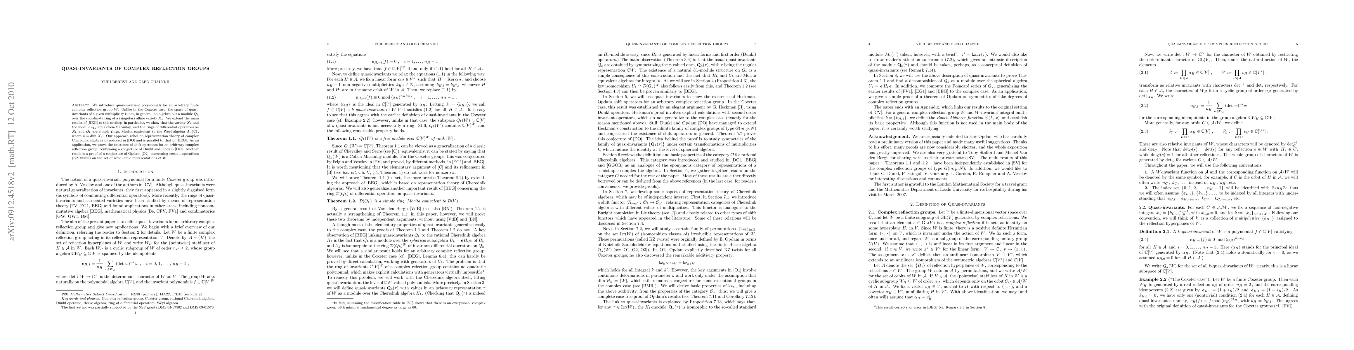 This paper introduces quasi-invariant polynomials for finite complex reflection groups, showing that these quasi-invariants form modules over singular affine varieties. The authors extend previous results to this setting, proving that these varieties and modules are Cohen-Macaulay and establishing the simplicity of associated differential operator rings, which are Morita equivalent to the Weyl algebra.