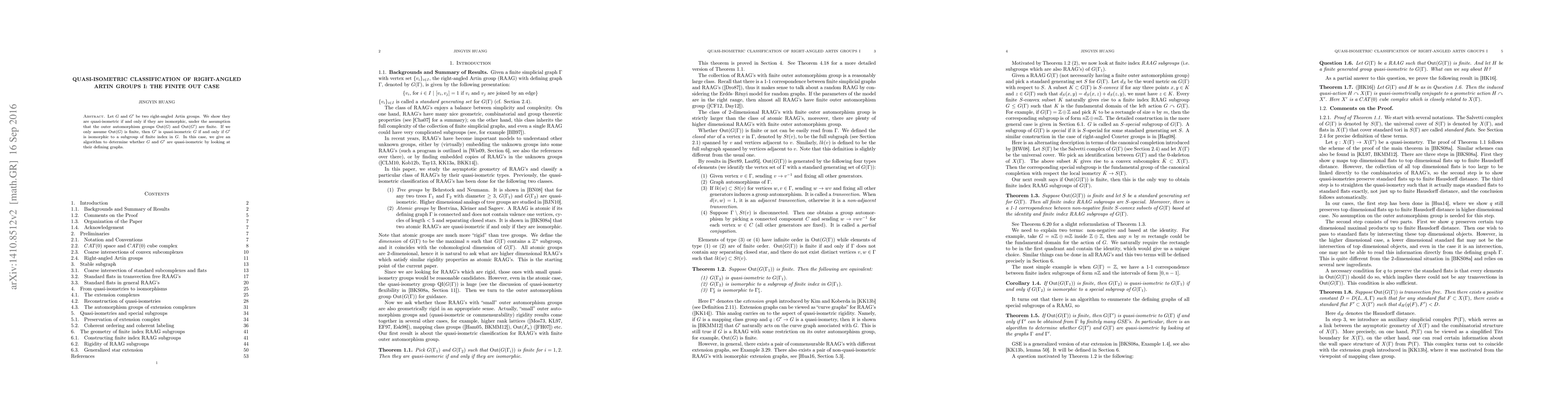 This paper establishes that right-angled Artin groups are quasi-isometric if and only if they are isomorphic, provided their outer automorphism groups are finite. When only one group's outer automorphism group is finite, the other group is quasi-isometric if isomorphic to a finite index subgroup, with an algorithm given for verification based on their defining graphs.