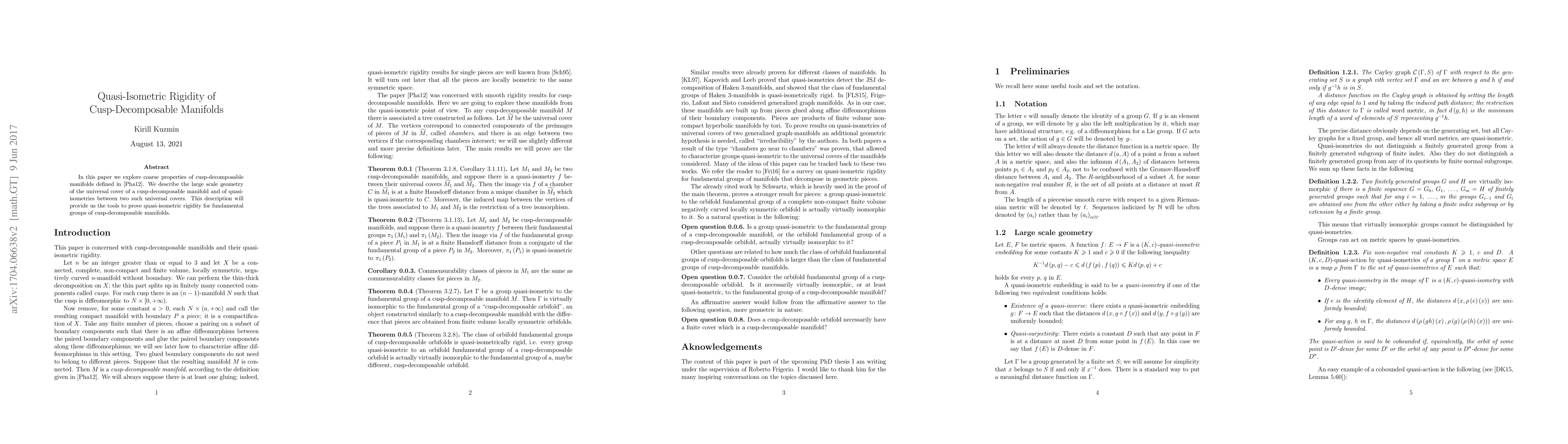 This paper investigates the large-scale geometry of cusp-decomposable manifolds, specifically focusing on the universal cover and quasi-isometries between them, ultimately proving quasi-isometric rigidity for their fundamental groups.