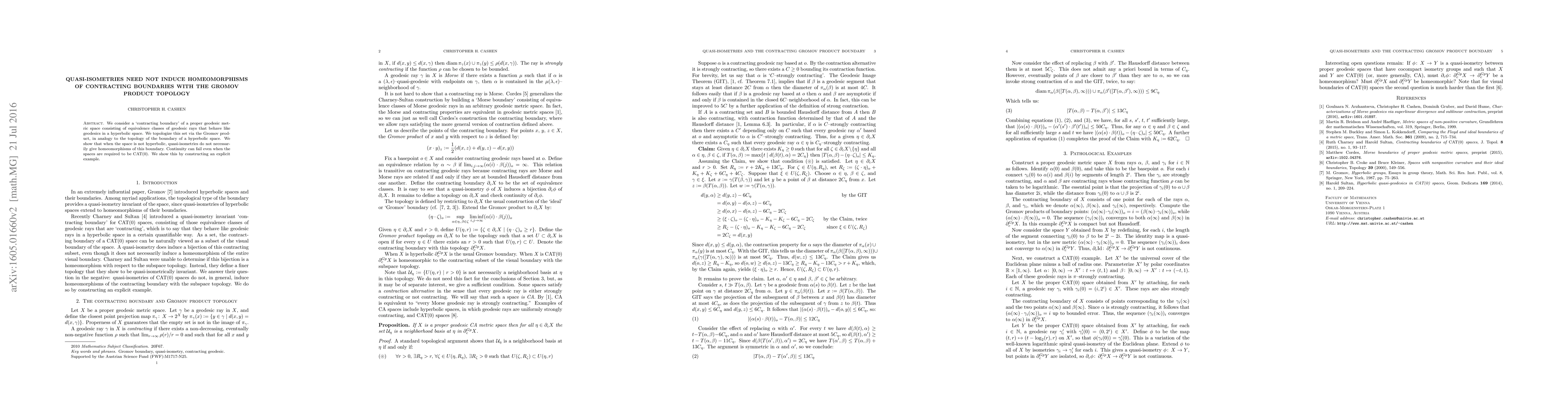 We consider a `contracting boundary' of a proper geodesic metric space consisting of equivalence classes of geodesic rays that behave like geodesics in a hyperbolic space. We topologize this set via the Gromov product, in analogy to the topology of the boundary of a hyperbolic space. We show that when the space is not hyperbolic, quasi-isometries do not necessarily give homeomorphisms of this boundary. Continuity can fail even when the spaces are required to be CAT(0). We show this by constructing an explicit example.