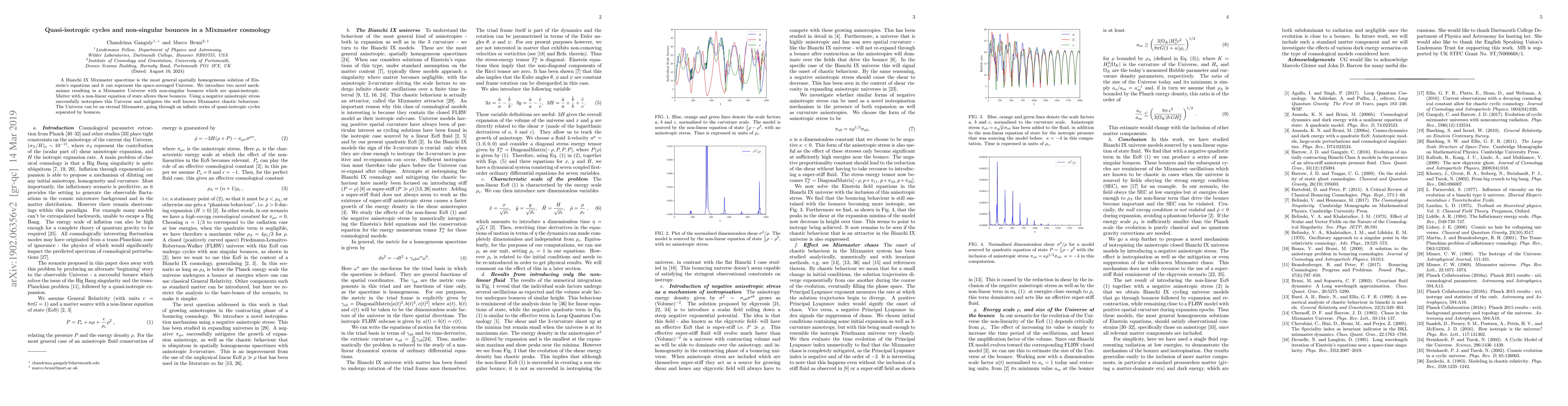 This paper explores a Bianchi IX Mixmaster cosmology, introducing mechanisms for non-singular bounces and quasi-isotropic cycles. It utilizes a fluid with a non-linear equation of state and negative anisotropic stresses to achieve these bounces, thereby mitigating chaotic behavior and allowing for an eternal Mixmaster Universe with cycles approximated by a standard Friedmann-Lemaître-Robertson-Walker model.