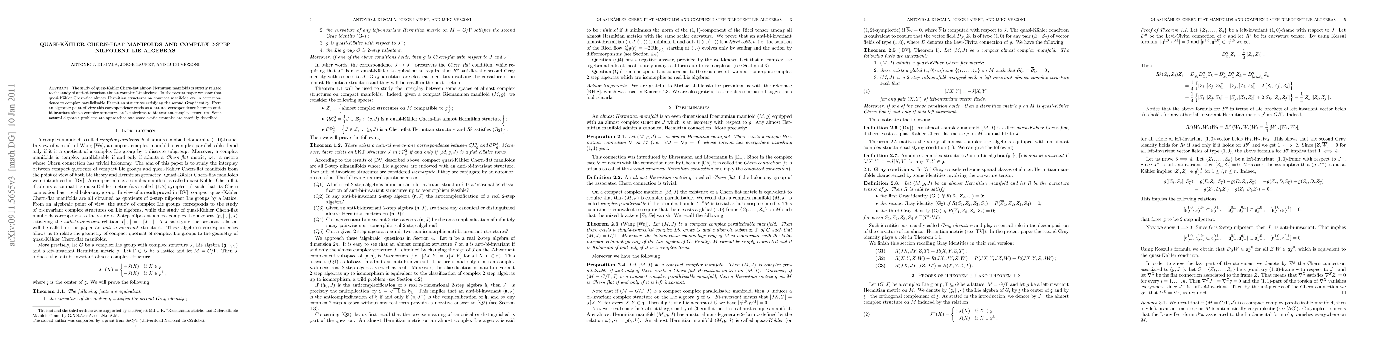The study of quasi-K\"ahler Chern-flat almost Hermitian manifolds is strictly related to the study of anti-bi-invariant almost complex Lie algebras. In the present paper we show that quasi-K\"ahler Chern-flat almost Hermitian structures on compact manifolds are in correspondence to complex parallelisable Hermitian structures satisfying the second Gray identity. From an algebraic point of view this correspondence reads as a natural correspondence between anti-bi-invariant almost complex structures on Lie algebras to bi-invariant complex structures. Some natural algebraic problems are approached and some exotic examples are carefully described.