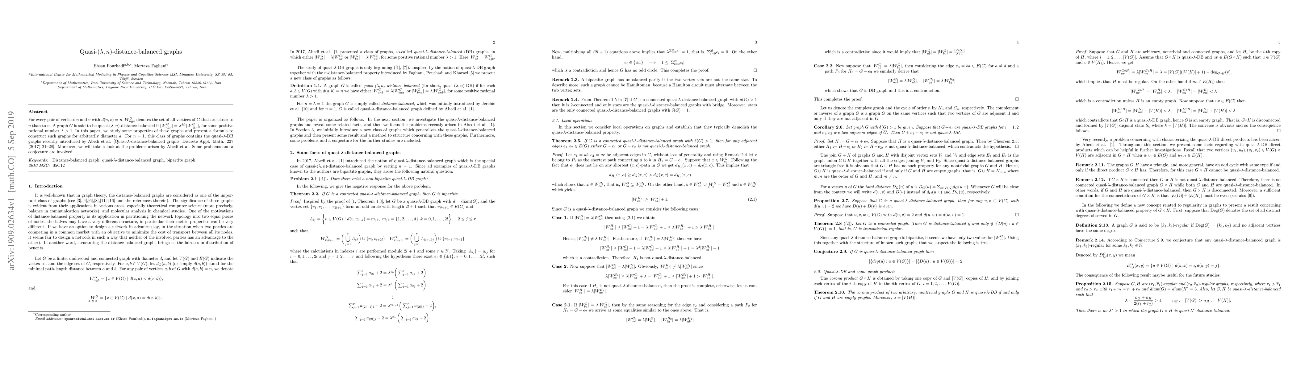 For every pair of vertices u and v with d(u; v) = n, Wun G v denotes the set of all vertices of G that are closer to u than to v. In this paper, we introduce quasi-({\lambda}; n)-distance-balanced graphs and then study some properties of these graphs and present a formula to construct such graphs for arbitrarily diameter d. For n = 1, this class of graphs contains the quasi-{\lambda}-DB graphs recently introduced by Abedi et al. [Quasi-{\lambda}-distance-balanced graphs, Discrete Appl. Math. 227 (2017) 21{28]. Moreover, we will take a look at the problems arisen by Abedi et al. Some problems and conjecture are involved.
