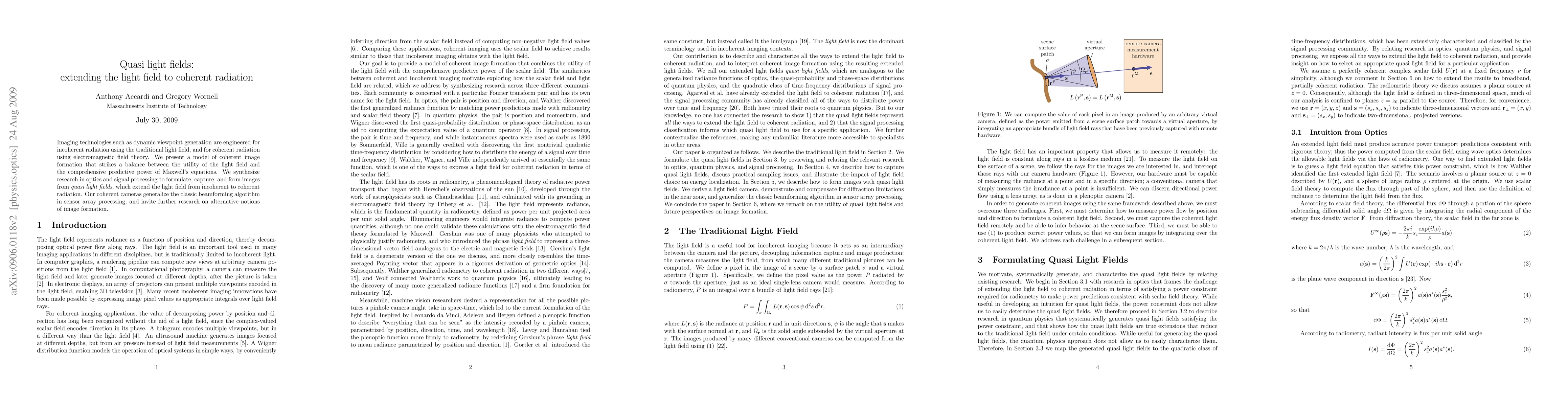 Imaging technologies such as dynamic viewpoint generation are engineered for incoherent radiation using the traditional light field, and for coherent radiation using electromagnetic field theory. We present a model of coherent image formation that strikes a balance between the utility of the light field and the comprehensive predictive power of Maxwell's equations. We synthesize research in optics and signal processing to formulate, capture, and form images from quasi light fields, which extend the light field from incoherent to coherent radiation. Our coherent cameras generalize the classic beamforming algorithm in sensor array processing, and invite further research on alternative notions of image formation.