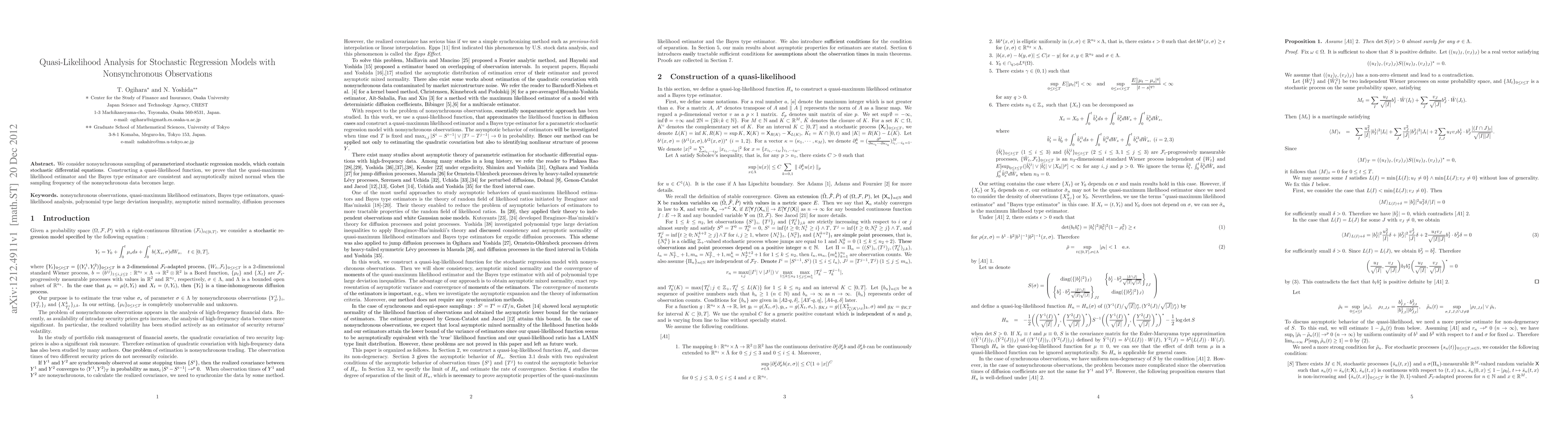 We consider nonsynchronous sampling of parameterized stochastic regression models, which contain stochastic differential equations. Constructing a quasi-likelihood function, we prove that the quasi-maximum likelihood estimator and the Bayes type estimator are consistent and asymptotically mixed normal when the sampling frequency of the nonsynchronous data becomes large.