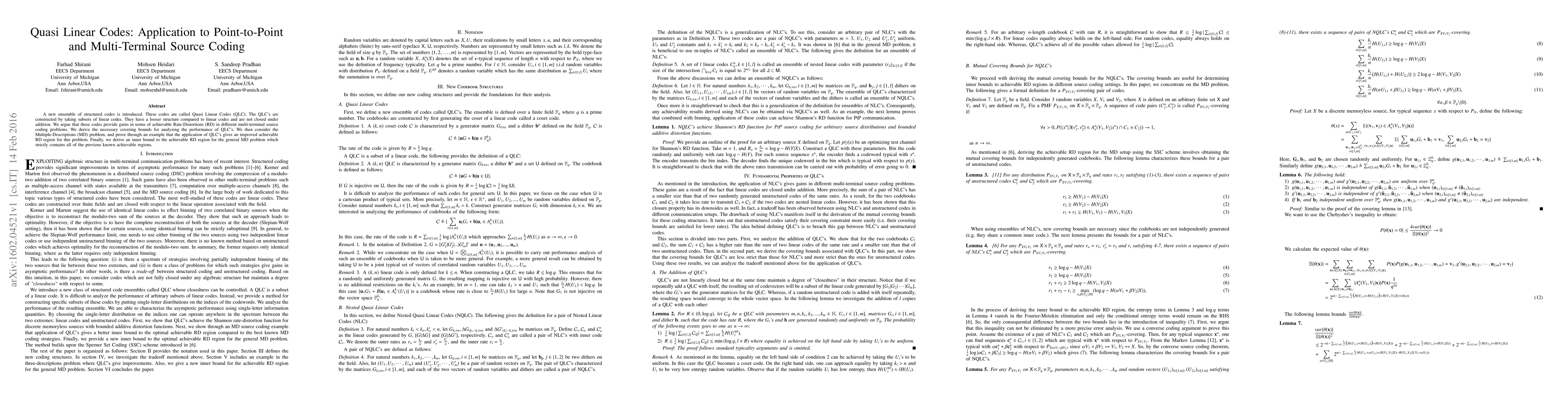 Researchers introduce Quasi Linear Codes (QLC) that outperform existing codes in multi-terminal source coding problems, improving rate-distortion gains and deriving new bounds for the Multiple-Descriptions problem.