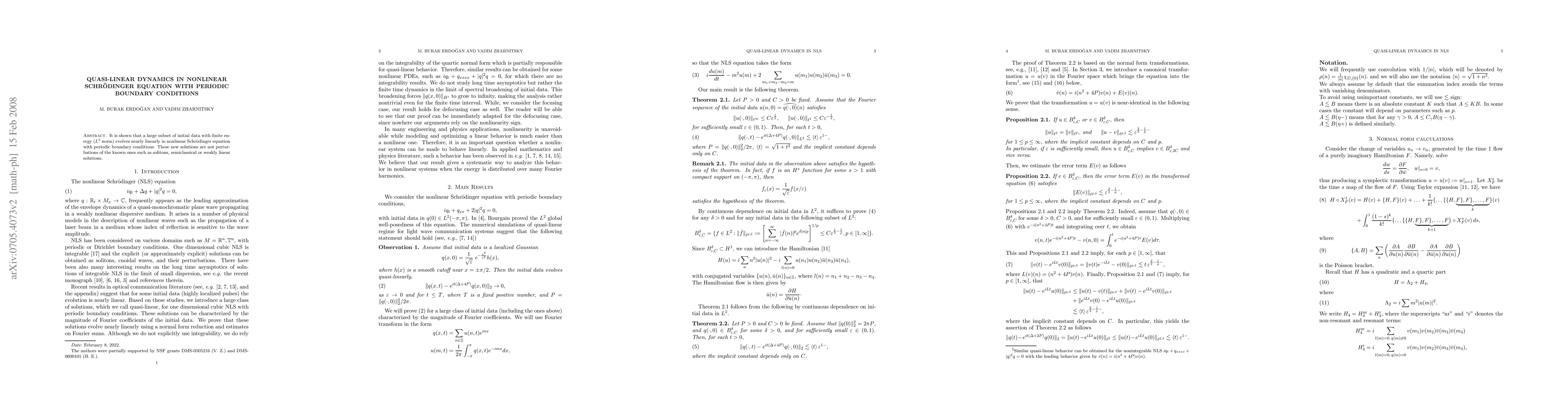 Summary: The paper demonstrates that a significant portion of initial data with finite energy evolves nearly linearly in the nonlinear Schrödinger equation under periodic boundary conditions, revealing new types of solutions distinct from known solitons or semiclassical solutions.