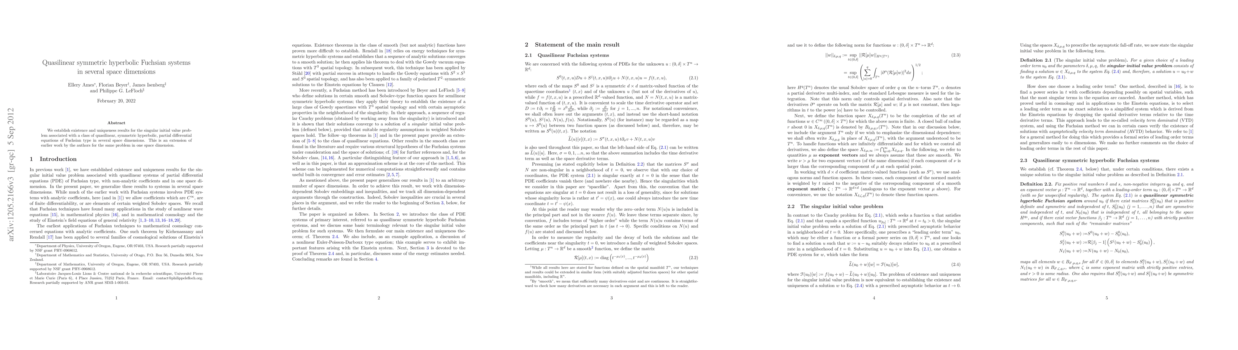 Summary: This paper establishes existence and uniqueness for the singular initial value problem of quasilinear, symmetric hyperbolic Fuchsian systems in multiple space dimensions, extending previous results from one dimension.