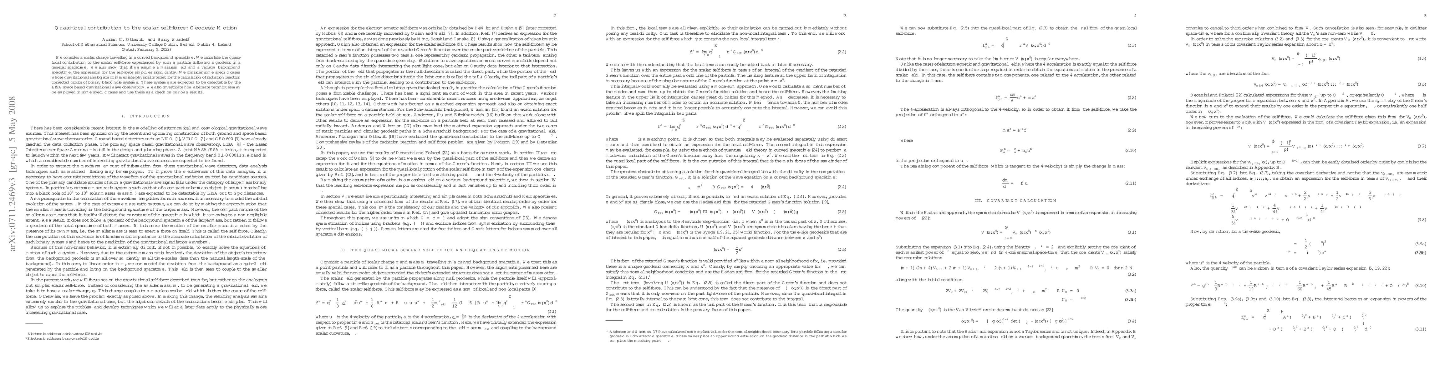 We consider a scalar charge travelling in a curved background spacetime. We calculate the quasi-local contribution to the scalar self-force experienced by such a particle following a geodesic in a general spacetime. We also show that if we assume a massless field and a vacuum background spacetime, the expression for the self-force simplifies significantly. We consider some specific cases whose gravitational analog are of immediate physical interest for the calculation of radiation reaction corrected orbits of binary black hole systems. These systems are expected to be detectable by the LISA space based gravitational wave observatory. We also investigate how alternate techniques may be employed in some specific cases and use these as a check on our own results.