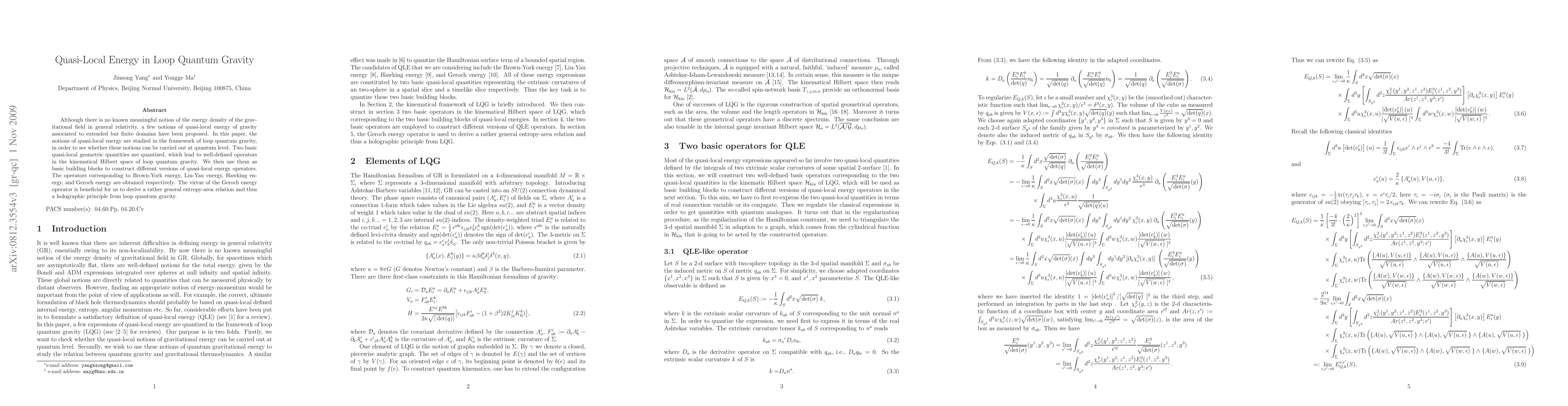 This paper explores quasi-local energy notions within loop quantum gravity, quantizing two basic geometric quantities to construct quasi-local energy operators for Brown-York, Liu-Yau, Hawking, and Geroch energies, ultimately deriving a holographic principle from the Geroch energy operator.