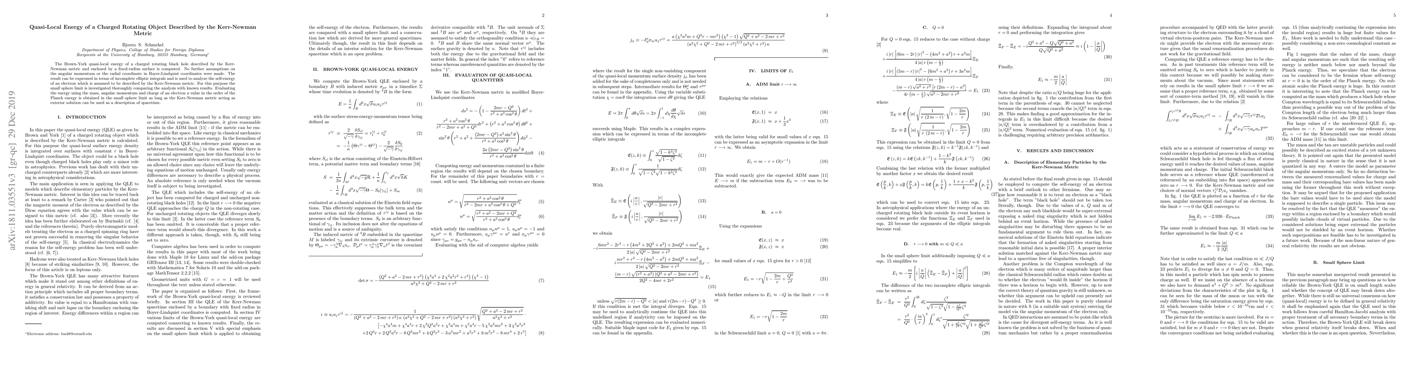 Researchers calculated the quasi-local energy of a charged rotating black hole using the Kerr-Newman metric, finding an energy value comparable to the Planck energy in the small sphere limit.