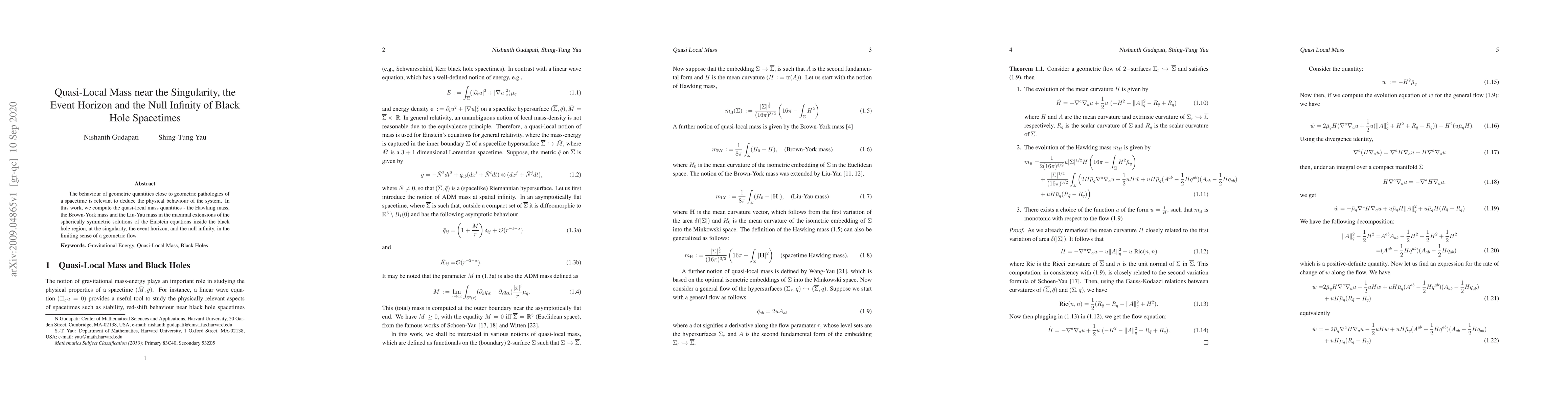 The behaviour of geometric quantities close to geometric pathologies of a spacetime is relevant to deduce the physical behaviour of the system. In this work, we compute the quasi-local mass quantities - the Hawking mass, the Brown-York mass and the Liu-Yau mass in the maximal extensions of the spherically symmetric solutions of the Einstein equations inside the black hole region, at the singularity, the event horizon, and the null infinity, in the limiting sense of a geometric flow.