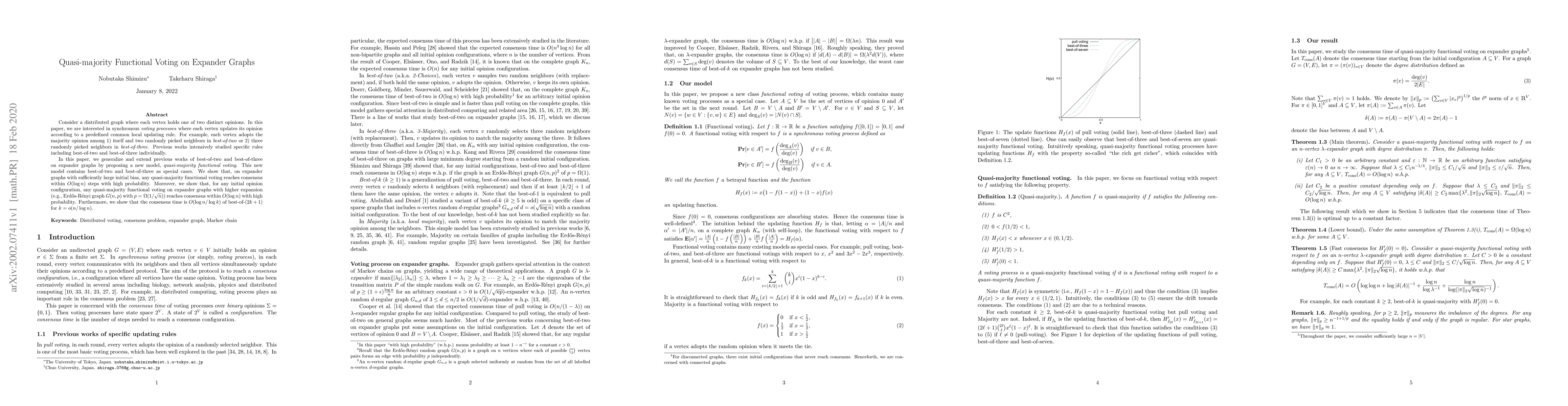 Consider a distributed graph where each vertex holds one of two distinct opinions. In this paper, we are interested in synchronous voting processes where each vertex updates its opinion according to a predefined common local updating rule. For example, each vertex adopts the majority opinion among 1) itself and two randomly picked neighbors in best-of-two or 2) three randomly picked neighbors in best-of-three. Previous works intensively studied specific rules including best-of-two and best-of-three individually. In this paper, we generalize and extend previous works of best-of-two and best-of-three on expander graphs by proposing a new model, quasi-majority functional voting. This new model contains best-of-two and best-of-three as special cases. We show that, on expander graphs with sufficiently large initial bias, any quasi-majority functional voting reaches consensus within $O(\log n)$ steps with high probability. Moreover, we show that, for any initial opinion configuration, any quasi-majority functional voting on expander graphs with higher expansion (e.g., Erd\H{o}s-R\'enyi graph $G(n,p)$ with $p=\Omega(1/\sqrt{n})$) reaches consensus within $O(\log n)$ with high probability. Furthermore, we show that the consensus time is $O(\log n/\log k)$ of best-of-$(2k+1)$ for $k=o(n/\log n)$.