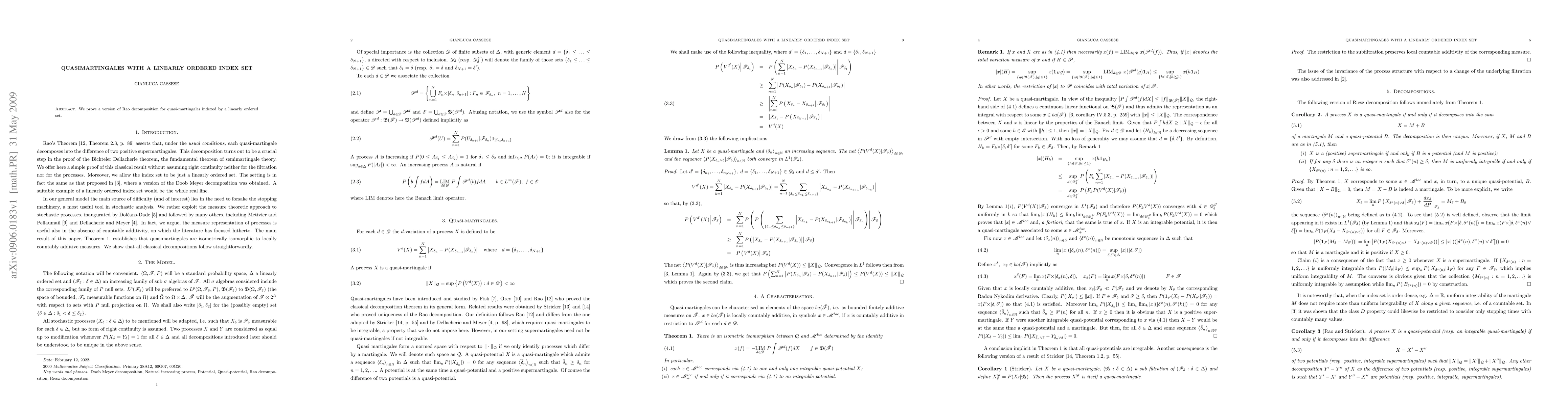 We prove a version of Rao decomposition for quasi-martingales indexed by a linearly ordered set.