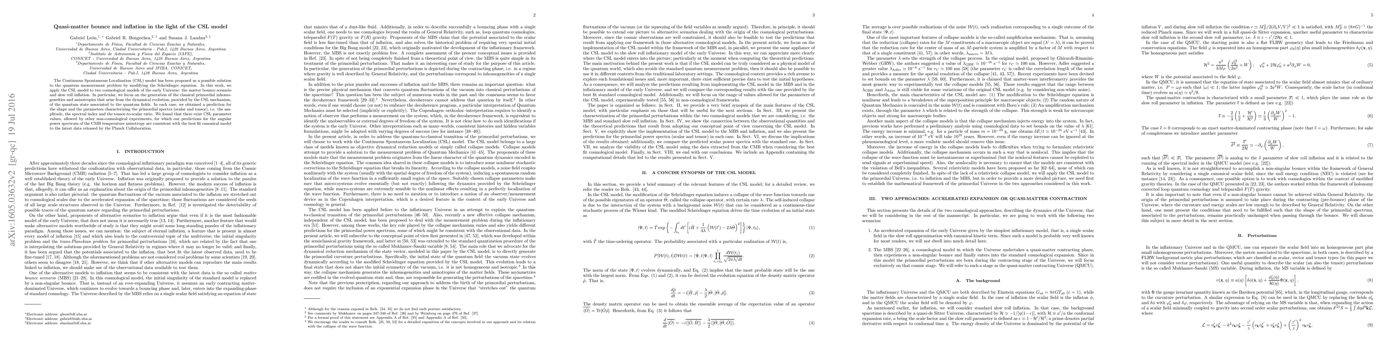 This paper applies the Continuous Spontaneous Localization (CSL) model to explore quasi-matter bounce and slow roll inflation, predicting the shape and parameters of primordial spectra. It finds CSL parameter values consistent with Planck data, suggesting the CSL model's potential in explaining early Universe dynamics.