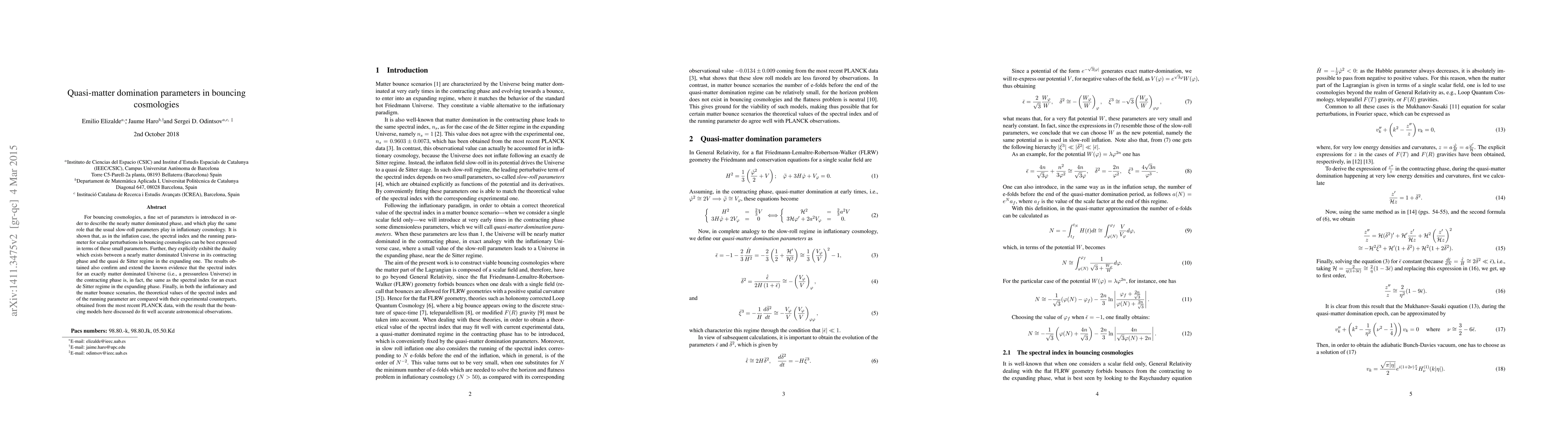 This research paper explores the parameters of bouncing cosmologies, revealing a connection between nearly matter-dominated phases and quasi-de Sitter regimes, with results that align with recent astronomical observations.