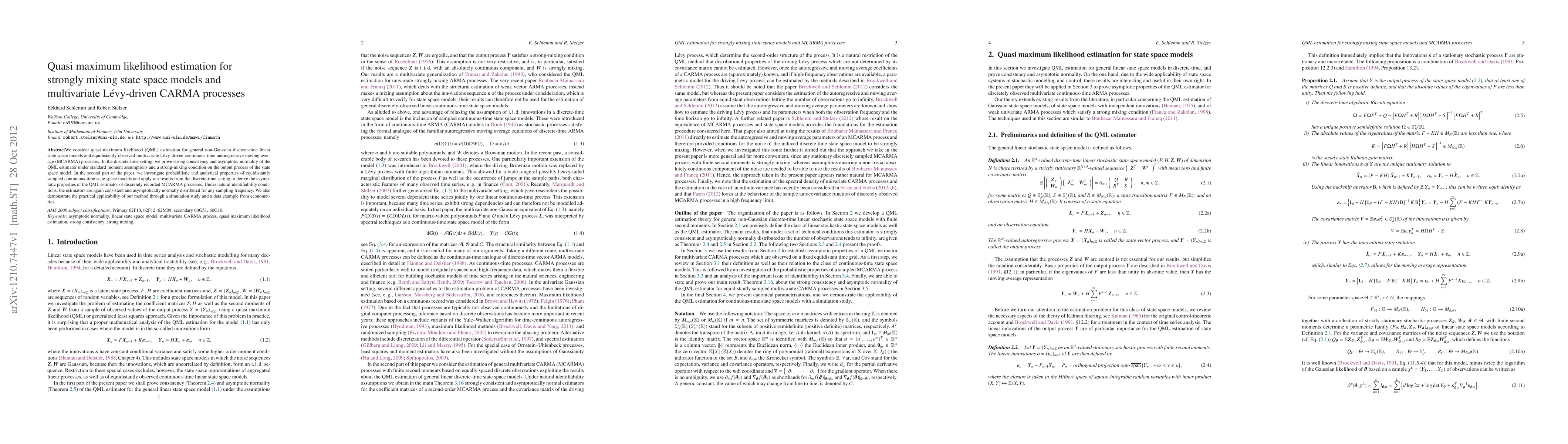 This paper develops quasi maximum likelihood (QML) estimation for non-Gaussian discrete-time state space models and equidistantly observed multivariate Lévy-driven continuous-time autoregressive moving average processes. The authors prove strong consistency and asymptotic normality of the QML estimator under strong-mixing conditions and apply these results to derive similar properties for sampled continuous-time models, demonstrating practical applicability via simulations and an econometrics example.