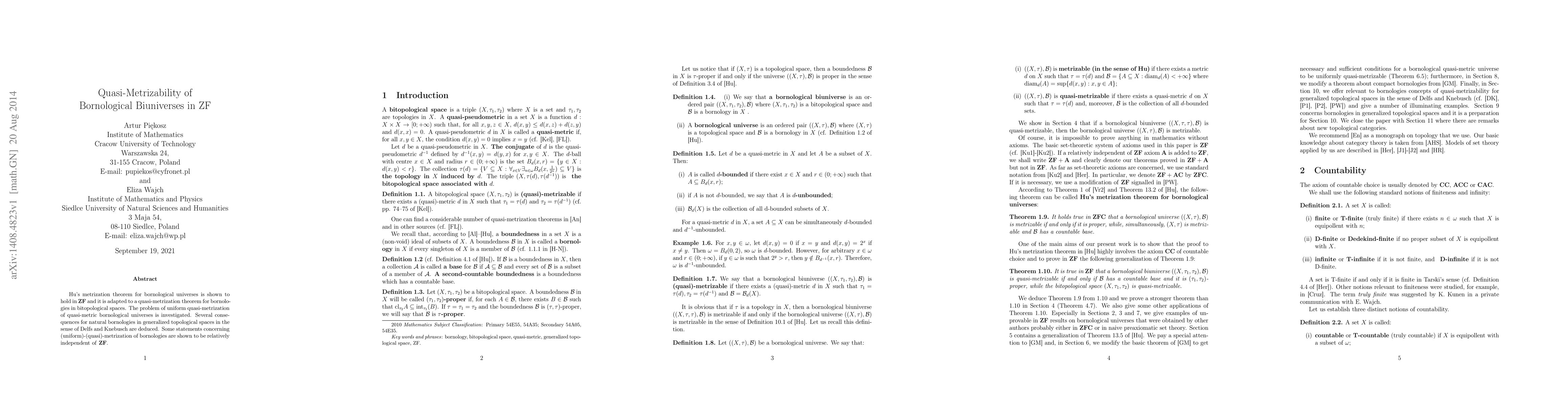 Hu's metrization theorem for bornological universes is shown to hold in ZF and it is adapted to a quasi-metrization theorem for bornologies in bitopological spaces. The problem of uniform quasi-metrization of quasi-metric bornological universes is investigated. Several consequences for natural bornologies in generalized topological spaces in the sense of Delfs and Knebusch are deduced. Some statements concerning (uniform)-(quasi)-metrization of bornologies are shown to be relatively independent of ZF.