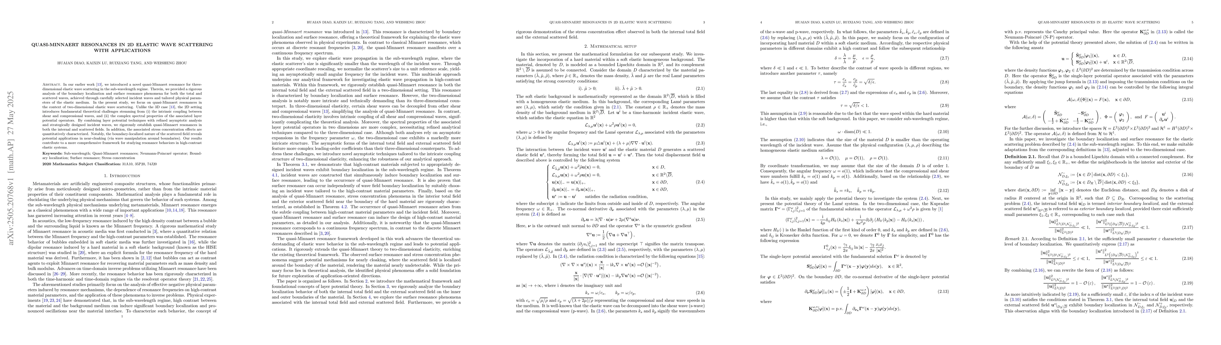 The study combines layer potential techniques with refined asymptotic analysis and strategically designed incident waves to establish quasi-Minnaert resonances in 2D elastic wave scattering.