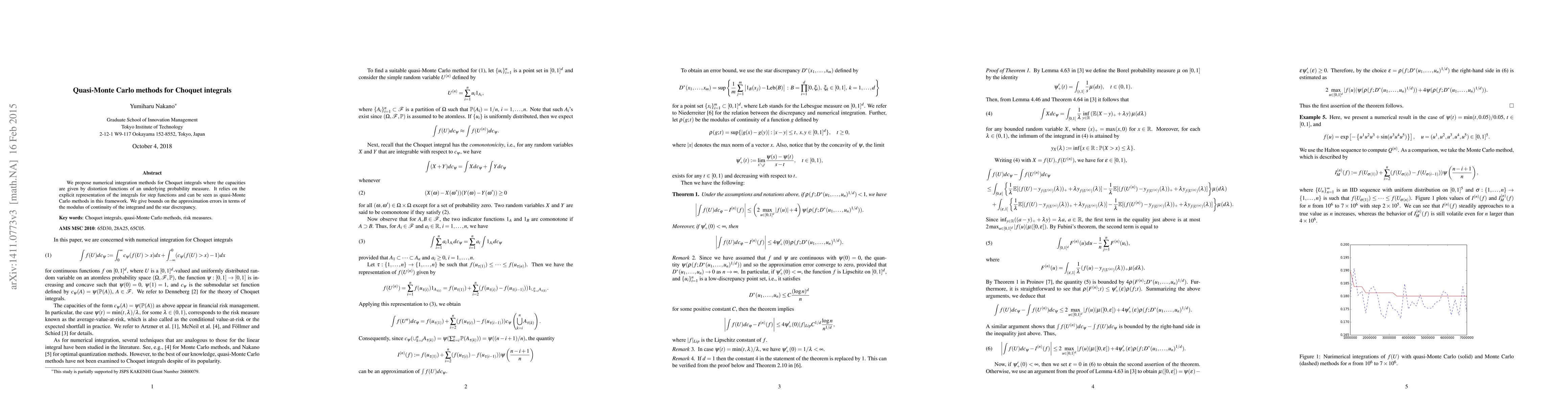 This paper proposes numerical integration methods for Choquet integrals using quasi-Monte Carlo methods, providing bounds on approximation errors in terms of the modulus of continuity and star discrepancy.