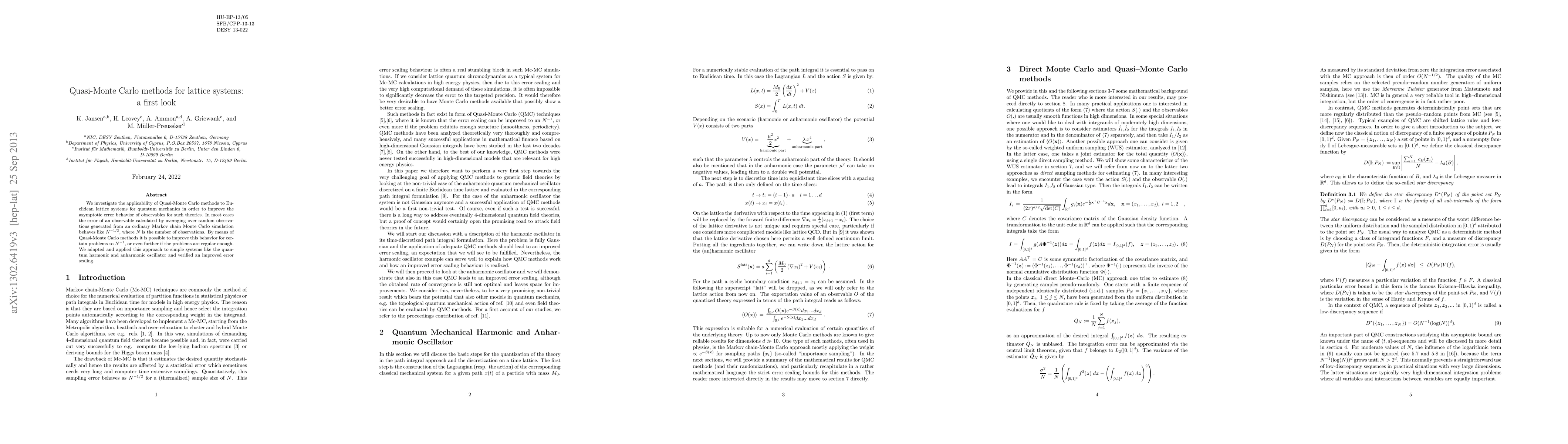 This paper explores the use of Quasi-Monte Carlo methods to enhance the error behavior of observables in quantum mechanics lattice systems, achieving improved asymptotic error scaling from N^{-1/2} to N^{-1} or better for certain regular problems. The method was tested on simple systems like quantum harmonic and anharmonic oscillators, demonstrating the effectiveness of the approach.