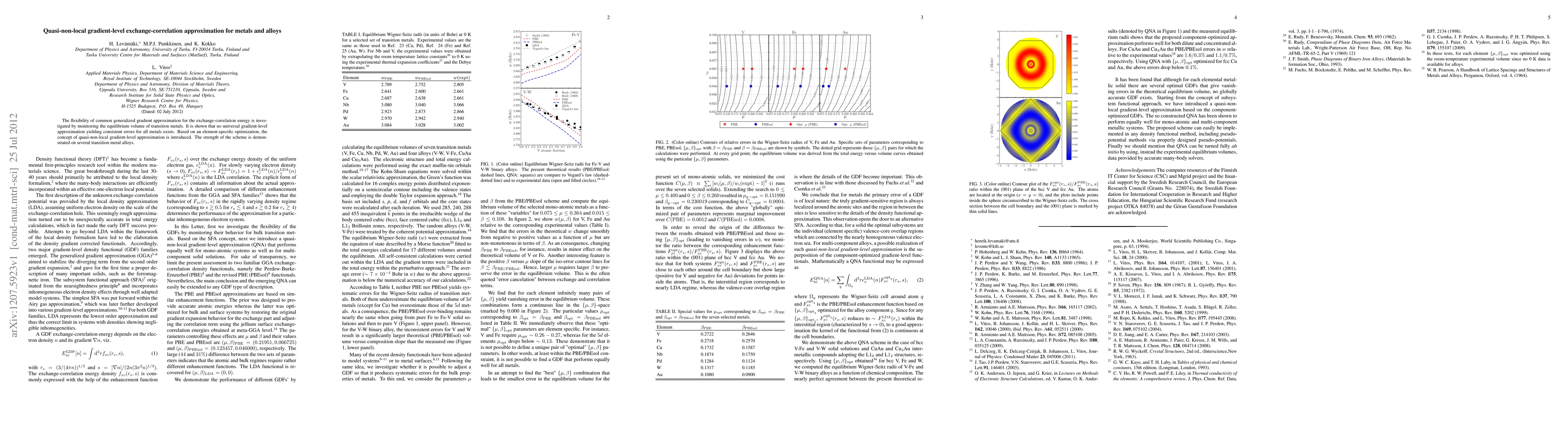 The flexibility of common generalized gradient approximation for the exchange-correlation energy is investigated by monitoring the equilibrium volume of transition metals. It is shown that no universal gradient-level approximation yielding consistent errors for all metals exists. Based on an element-specific optimization, the concept of quasi-non-local gradient-level approximation is introduced. The strength of the scheme is demonstrated on several transition metal alloys.