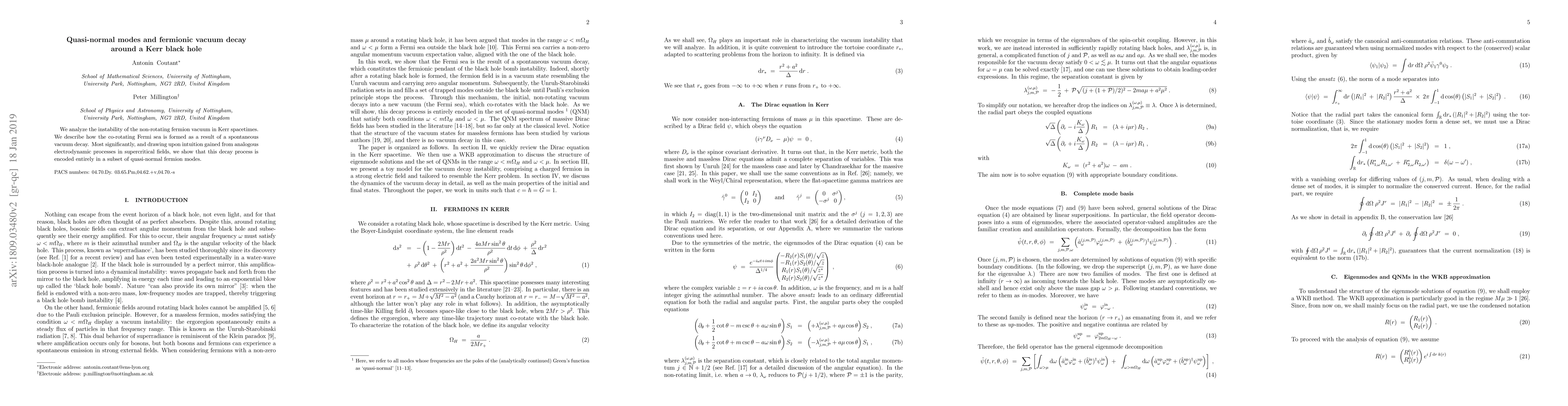 We analyze the instability of the non-rotating fermion vacuum in Kerr spacetimes. We describe how the co-rotating Fermi sea is formed as a result of a spontaneous vacuum decay. Most significantly, and drawing upon intuition gained from analogous electrodynamic processes in supercritical fields, we show that this decay process is encoded entirely in a subset of quasi-normal fermion modes.