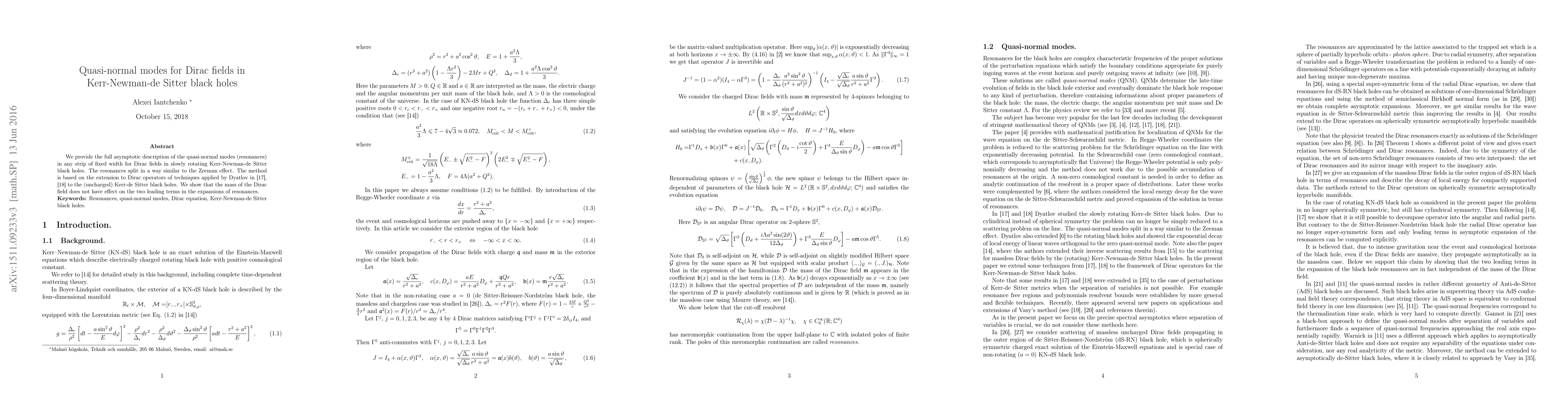 This study provides a detailed asymptotic analysis of quasi-normal modes for Dirac fields in slowly rotating Kerr-Newman-de Sitter black holes, revealing splittings akin to the Zeeman effect and demonstrating that the Dirac field mass does not affect the leading terms in the resonance expansions.