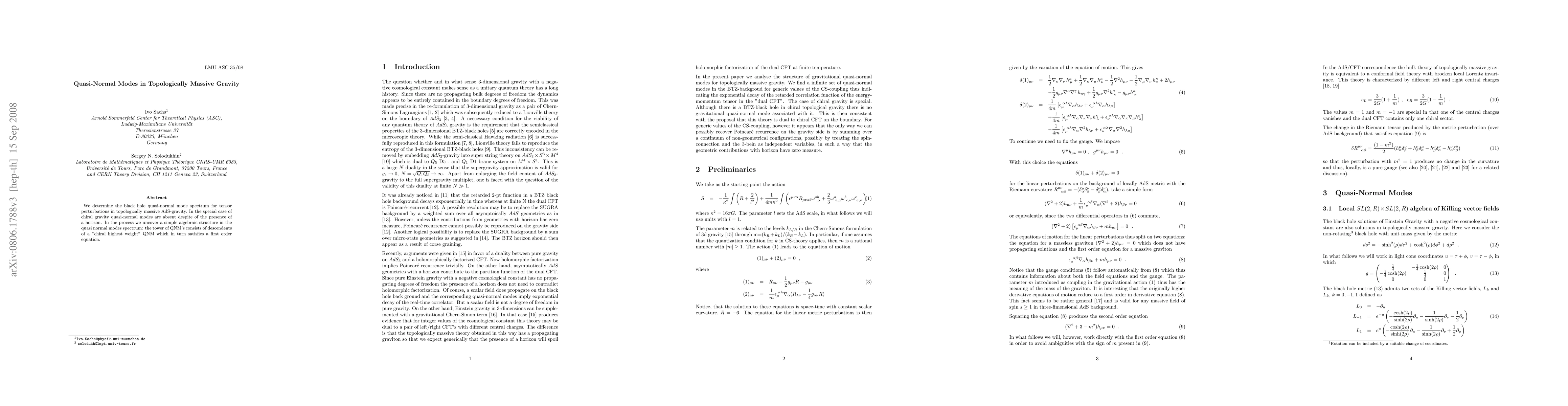 We determine the black hole quasi-normal mode spectrum for tensor perturbations in topologically massive AdS-gravity. In the special case of chiral gravity quasi-normal modes are absent despite of the presence of a horizon. In the process we uncover a simple algebraic structure in the quasi normal modes spectrum: the tower of QNM's consists of descendents of a "chiral highest weight'' QNM which in turn satisfies a first order equation.