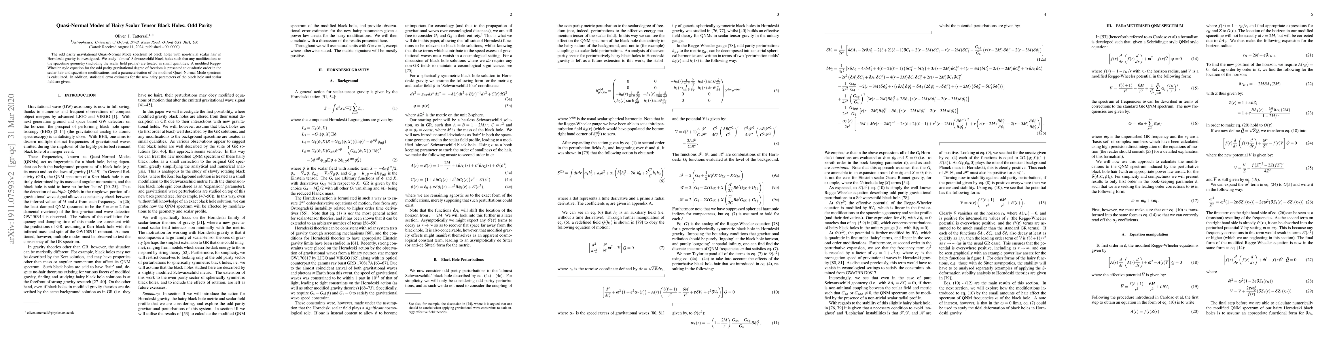 The odd parity gravitational Quasi-Normal Mode spectrum of black holes with non-trivial scalar hair in Horndeski gravity is investigated. We study `almost' Schwarzschild black holes such that any modifications to the spacetime geometry (including the scalar field profile) are treated as small quantities. A modified Regge-Wheeler style equation for the odd parity gravitational degree of freedom is presented to quadratic order in the scalar hair and spacetime modifications, and a parameterisation of the modified Quasi-Normal Mode spectrum is calculated. In addition, statistical error estimates for the new hairy parameters of the black hole and scalar field are given.