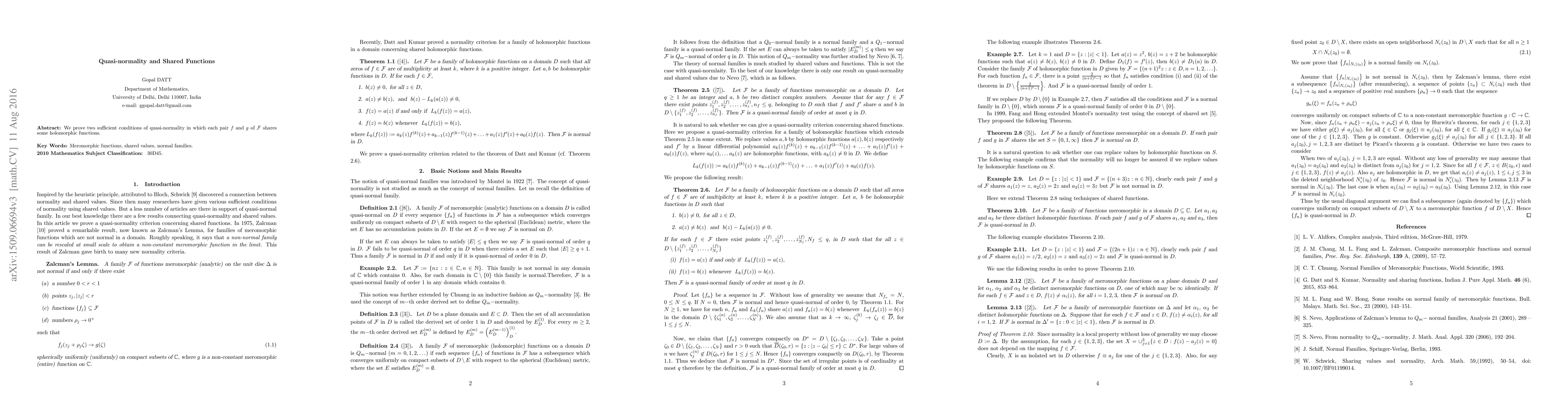 Summary: This paper establishes two conditions ensuring quasi-normality where any pair of functions $f$ and $g$ from $\mathcal{F}$ share some holomorphic functions, contributing to the theory of quasi-normal families in complex analysis.