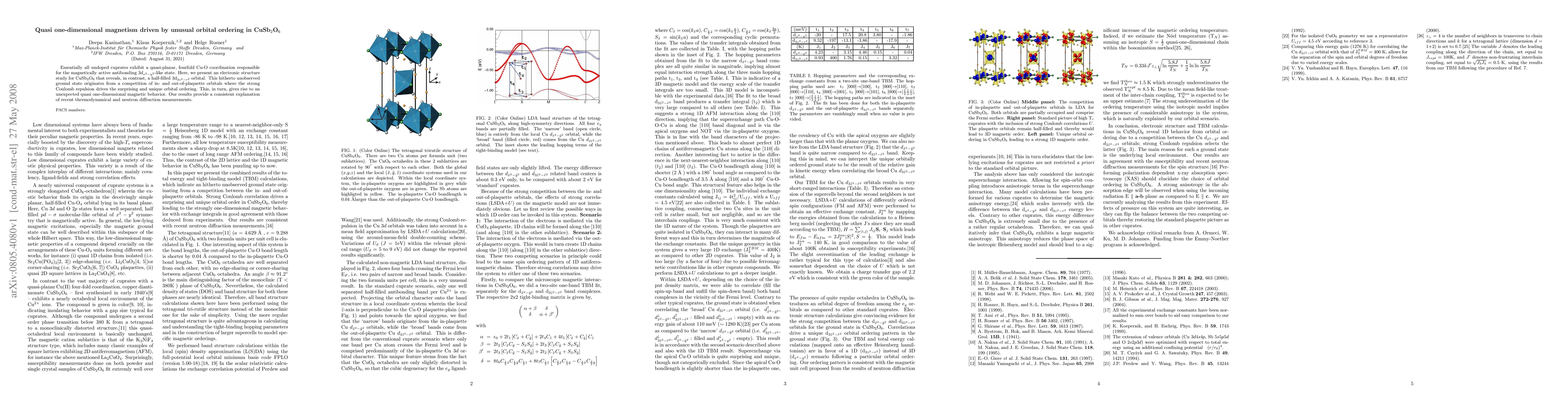CuSb2O6 exhibits unique quasi one-dimensional magnetism due to unusual orbital ordering, differing from the typical fourfold Cu-O coordination in undoped cuprates.