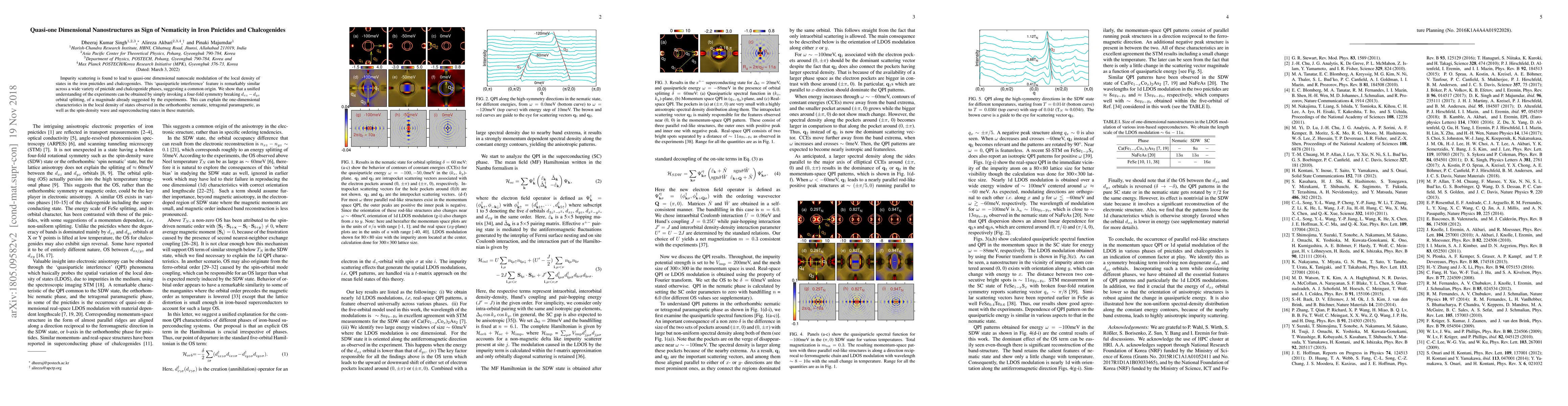 This paper demonstrates that impurity scattering induces quasi-one-dimensional nanoscale modulations in the local density of states in iron pnictides and chalcogenides, revealing a common origin for these modulations. The observed "quasiparticle interference" can be explained by a four-fold symmetry breaking due to $d_{xz}-d_{yz}$ orbital splitting, linking these phenomena to nematicity across various material states.