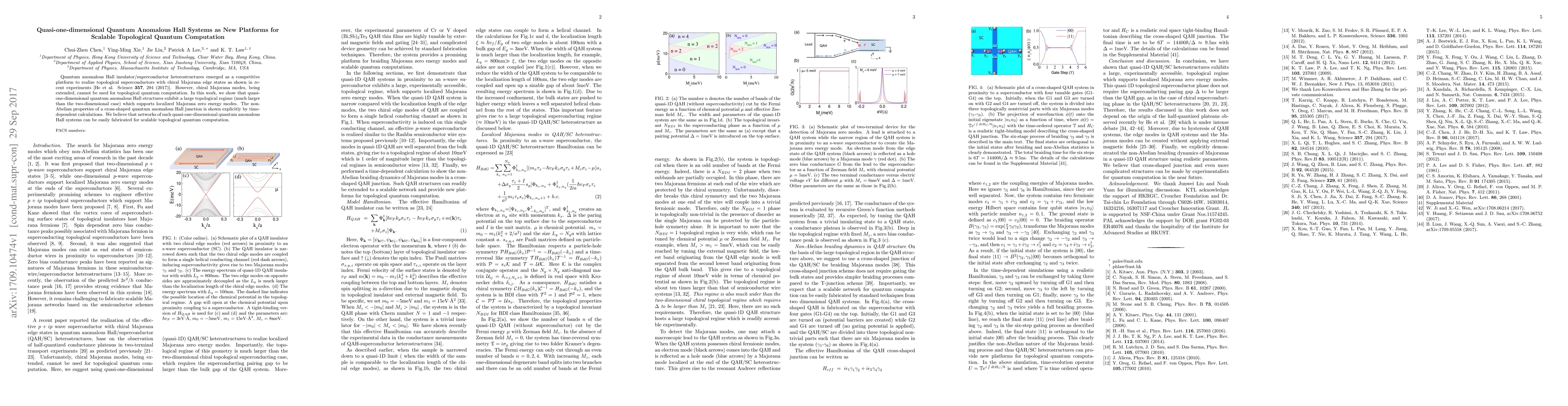 This paper demonstrates that quasi-one-dimensional quantum anomalous Hall structures support localized Majorana zero energy modes, offering a scalable platform for topological quantum computation. The study highlights the non-Abelian properties of cross-shaped junctions and suggests that these structures can be fabricated for practical quantum computing applications.