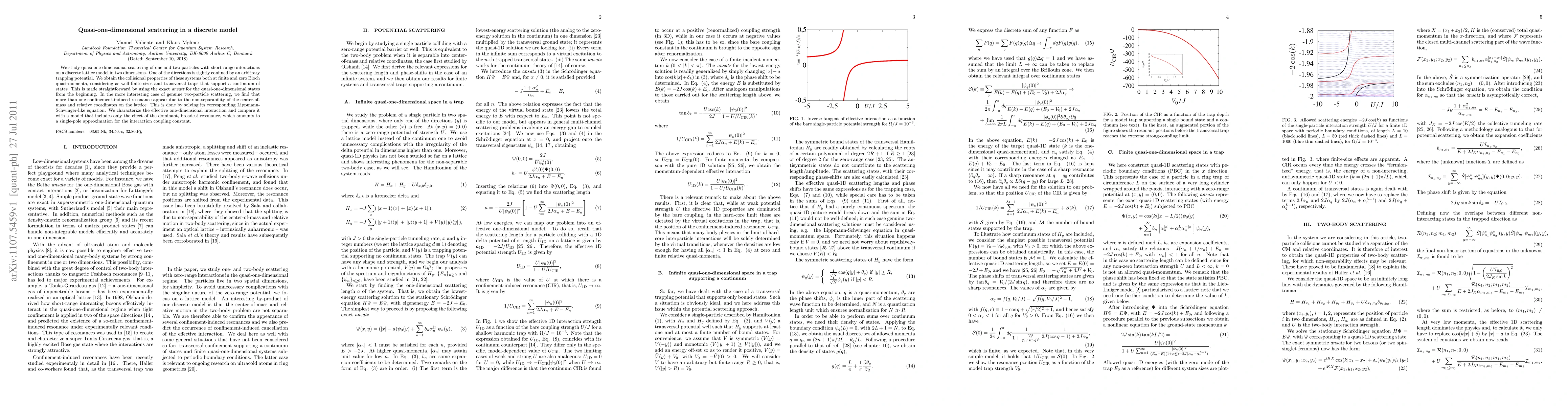 We study quasi-one-dimensional scattering of one and two particles with short-range interactions on a discrete lattice model in two dimensions. One of the directions is tightly confined by an arbitrary trapping potential. We obtain the collisional properties of these systems both at finite and zero Bloch quasi- momenta, considering as well finite sizes and transversal traps that support a continuum of states. This is made straightforward by using the exact ansatz for the quasi-one-dimensional states from the beginning. In the more interesting case of genuine two-particle scattering, we find that more than one confinement-induced resonance appear due to the non-separability of the center-of-mass and relative coordinates on the lattice. This is done by solving its corresponding Lippmann- Schwinger-like equation. We characterize the effective one-dimensional interaction and compare it with a model that includes only the effect of the dominant, broadest resonance, which amounts to a single-pole approximation for the interaction coupling constant.