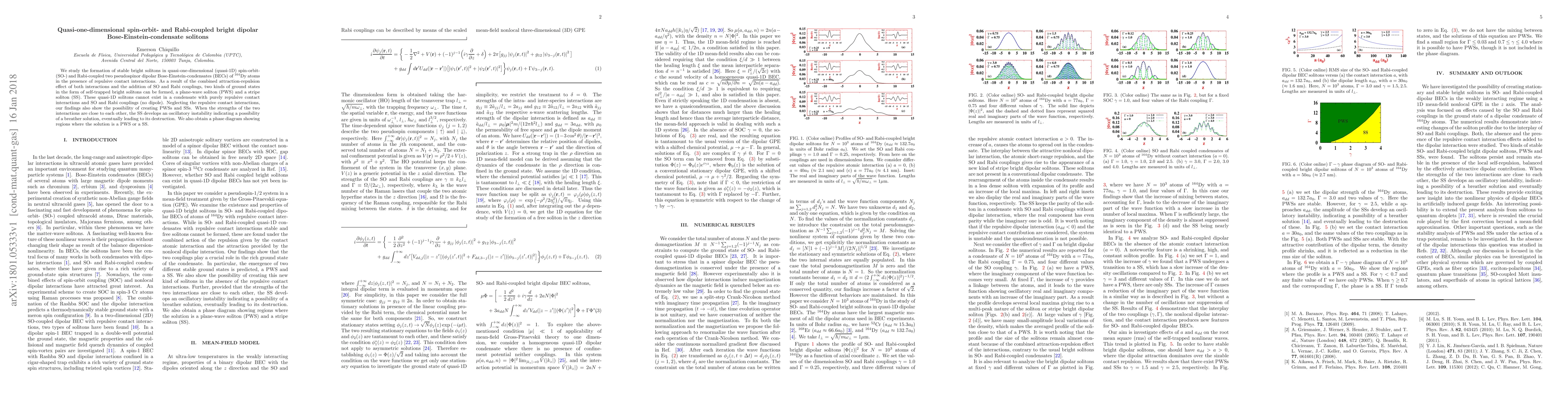This paper investigates the formation of stable bright solitons in quasi-one-dimensional spin-orbit- and Rabi-coupled dipolar Bose-Einstein condensates, revealing the existence of plane-wave solitons and stripe solitons due to combined interaction effects. The study also highlights the instability of stripe solitons under certain conditions and provides a phase diagram for the different soliton types.
