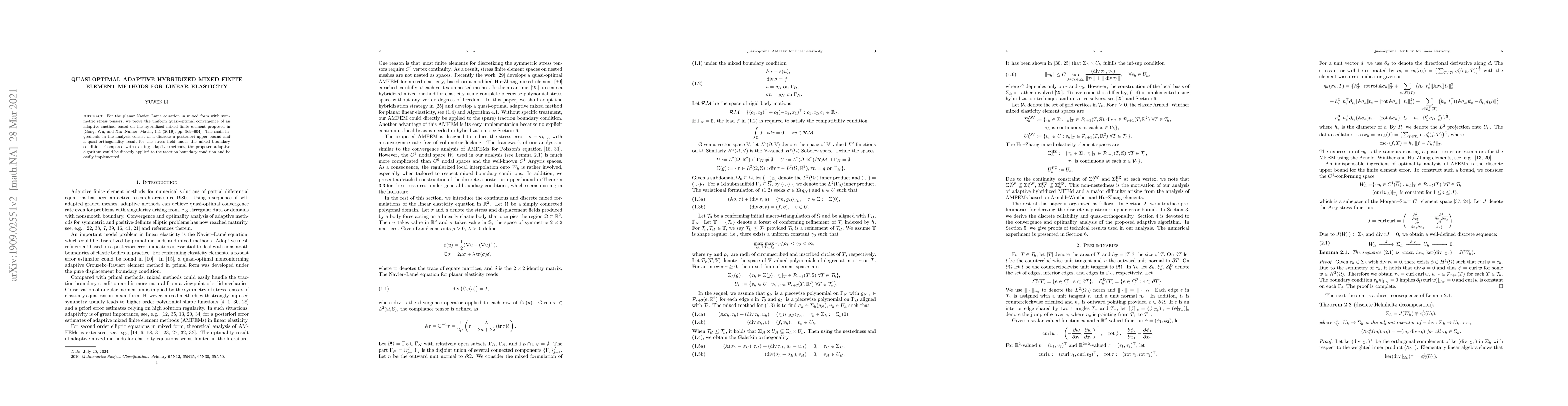 This paper presents an adaptive hybridized mixed finite element method for the planar Navier-Lamé equation, proving its quasi-optimal convergence. The method leverages a discrete a posteriori upper bound and a quasi-orthogonality result, offering straightforward application to traction boundary conditions.