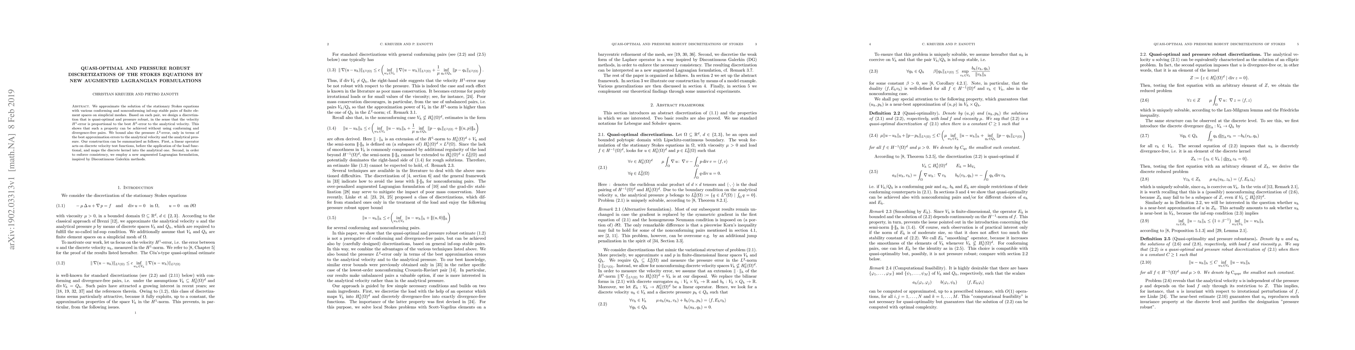 This paper proposes quasi-optimal and pressure robust discretizations for the Stokes equations using various finite element pairs, achieving robustness without requiring conforming and divergence-free pairs. The method involves a linear operator and a new augmented Lagrangian formulation to enforce consistency.