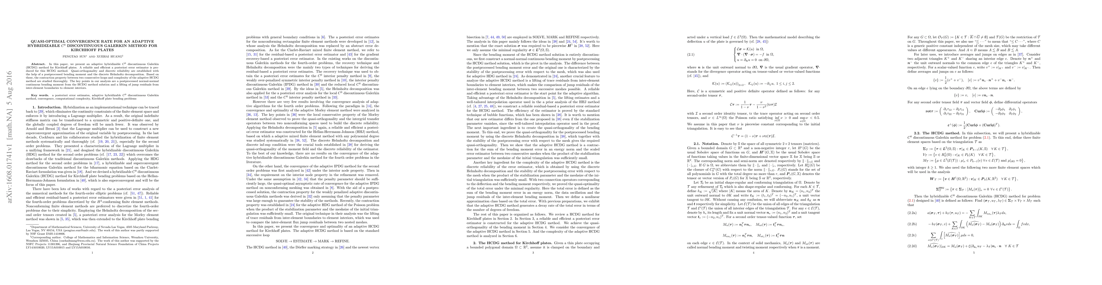 In this paper, we present an adaptive hybridizable $C^0$ discontinuous Galerkin (HCDG) method for Kirchhoff plates. A reliable and efficient a posteriori error estimator is produced for this HCDG method. Quasi-orthogonality and discrete reliability are established with the help of a postprocessed bending moment and the discrete Helmholtz decomposition. Based on these, the contraction property between two consecutive loops and complexity of the adaptive HCDG method are studied thoroughly. The key points in our analysis are a postprocessed normal-normal continuous bending moment from the HCDG method solution and a lifting of jump residuals from inter-element boundaries to element interiors.