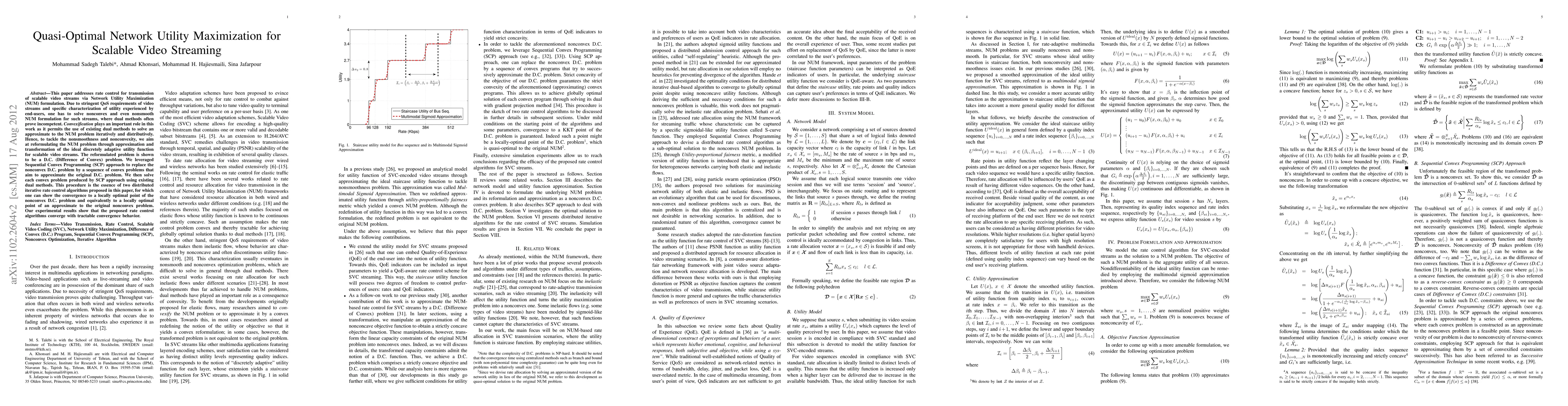 This paper proposes a method to optimize network utility for scalable video streaming using convexification and sequential convex programming, enabling convergent rate control algorithms with tractable behavior.