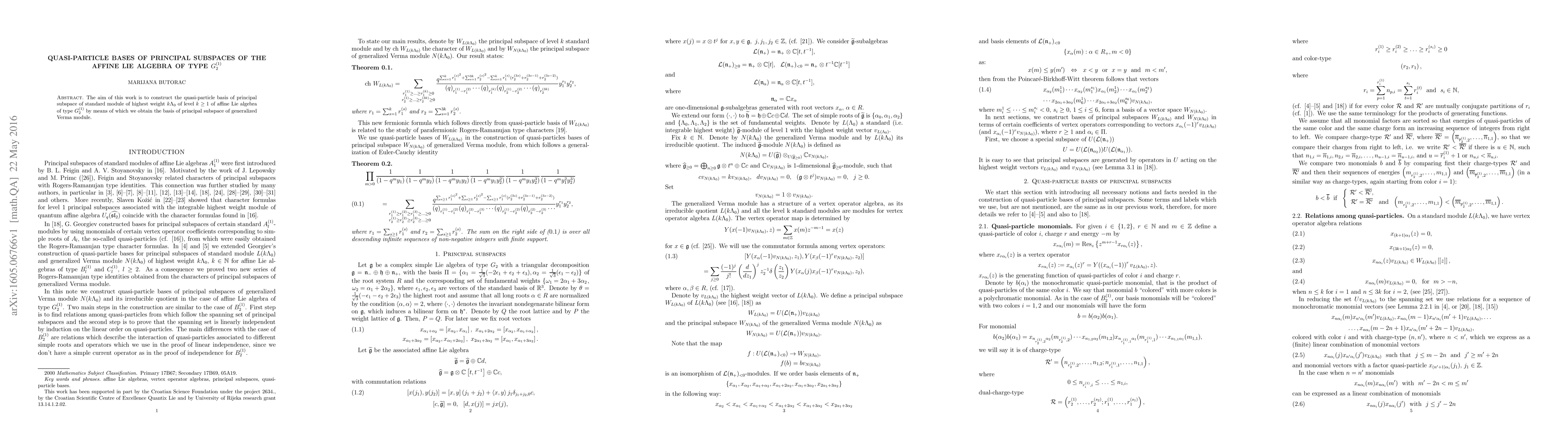 The aim of this work is to construct the quasi-particle basis of principal subspace of standard module of highest weight $k\Lambda_0$ of level $k\geq 1$ of affine Lie algebra of type $G_2^{(1)}$ by means of which we obtain the basis of principal subspace of generalized Verma module.