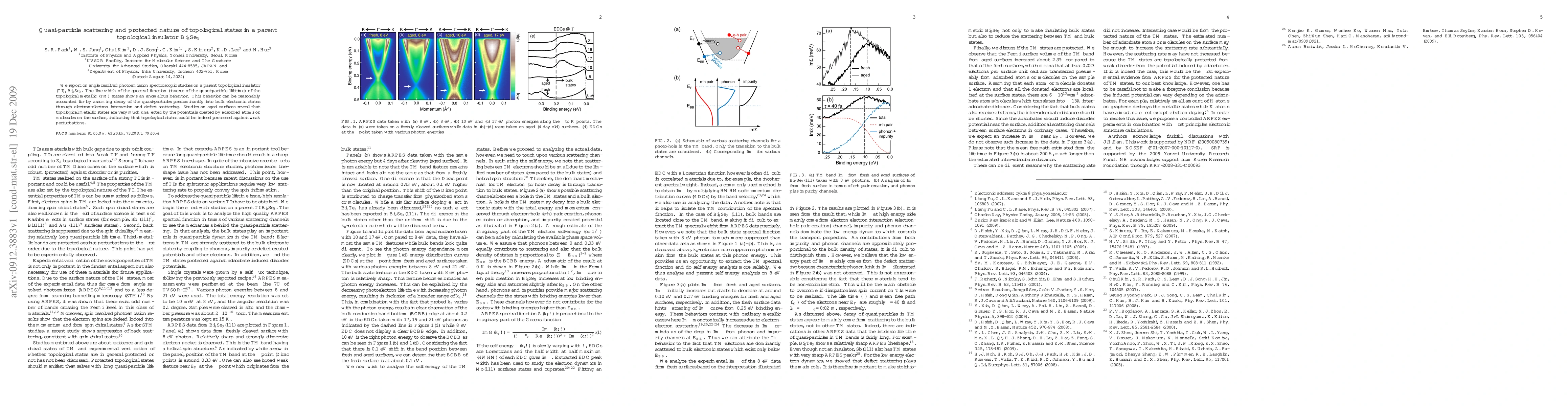 We report on angle resolved photoemission spectroscopic studies on a parent topological insulator (TI), Bi$_2$Se$_3$. The line width of the spectral function (inverse of the quasi-particle lifetime) of the topological metallic (TM) states shows an anomalous behavior. This behavior can be reasonably accounted for by assuming decay of the quasi-particles predominantly into bulk electronic states through electron-electron interaction and defect scattering. Studies on aged surfaces reveal that topological metallic states are very much unaffected by the potentials created by adsorbed atoms or molecules on the surface, indicating that topological states could be indeed protected against weak perturbations.