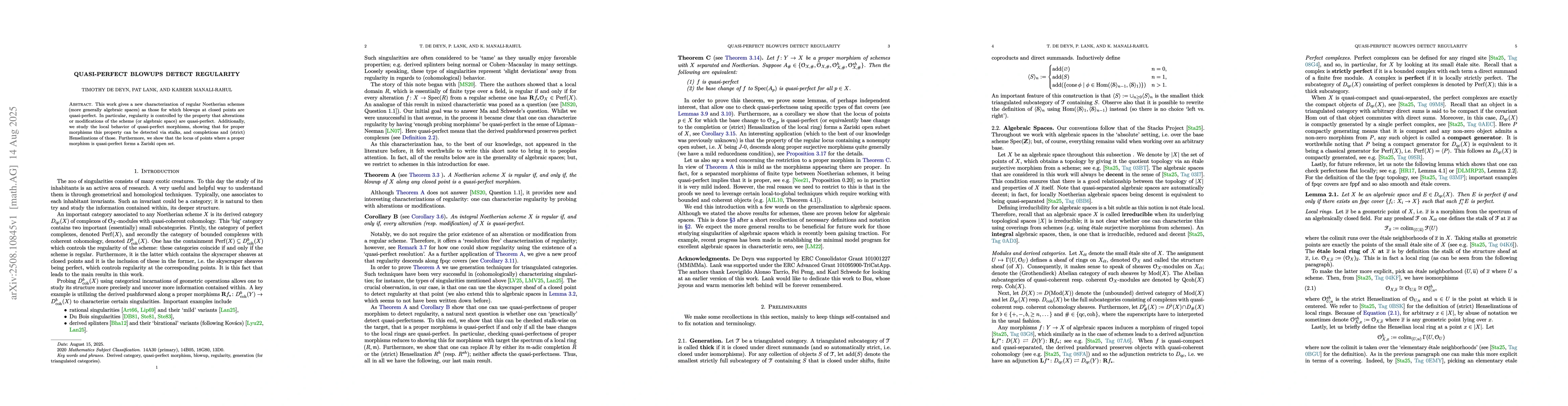 This work gives a new characterization of regular Noetherian schemes (more generally algebraic spaces) as those for which blowups at closed points are quasi-perfect. In particular, regularity is controlled by the property that alterations or modifications of the scheme (or algebraic space) are quasi-perfect. Additionally, we study the local behavior of quasi-perfect morphisms, showing that for proper morphisms this property can be detected via stalks, and completions and (strict) Henselizations of those. Furthermore, we show that the locus of points where a proper morphism is quasi-perfect forms a Zariski open set.