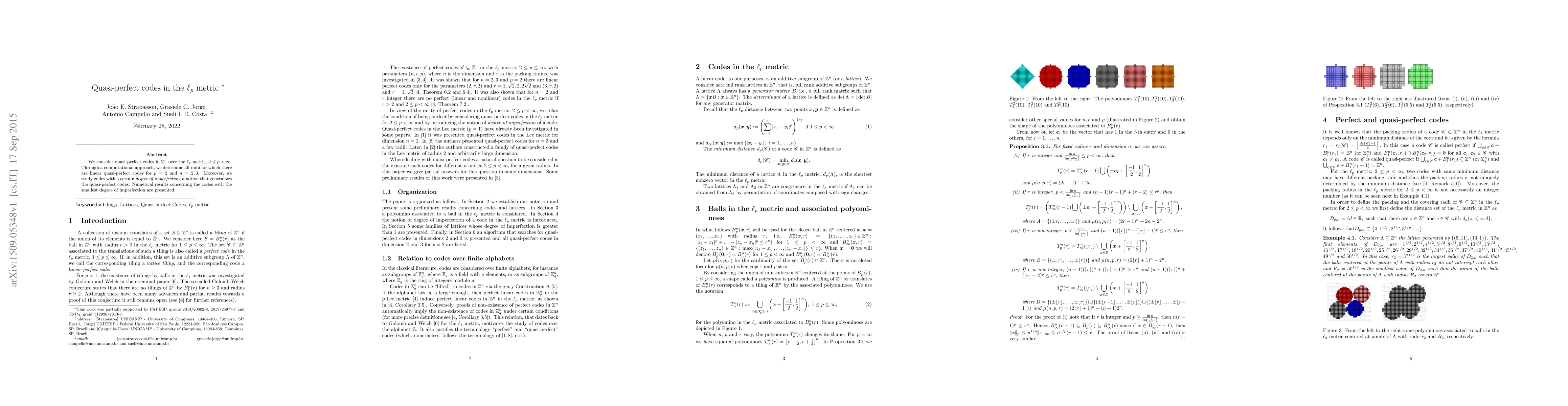 This paper finds linear quasi-perfect codes for p = 2 and n = 2, 3 in the πp metric, and studies codes with imperfection, presenting numerical results on the smallest degree of imperfection.