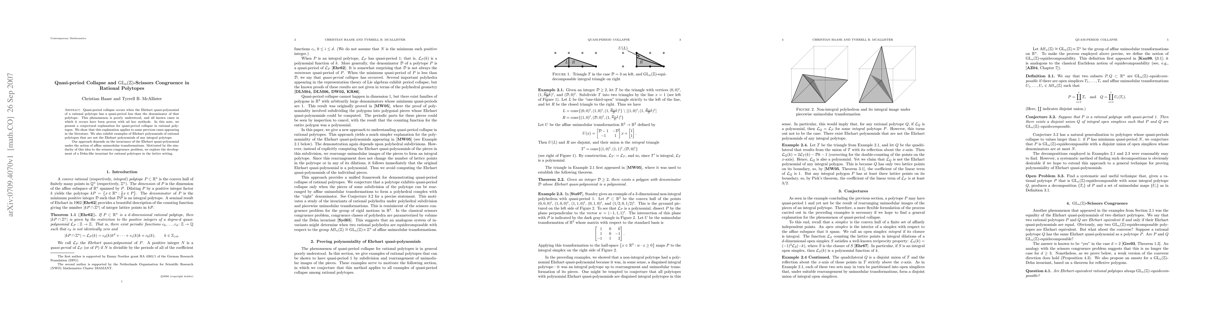 This paper proposes a conjecture explaining quasi-period collapse in rational polytopes, linking it to the invariance of Ehrhart quasi-polynomials under affine unimodular transformations. It also explores a Dehn-like invariant for rational polytopes, inspired by the scissors congruence problem.
