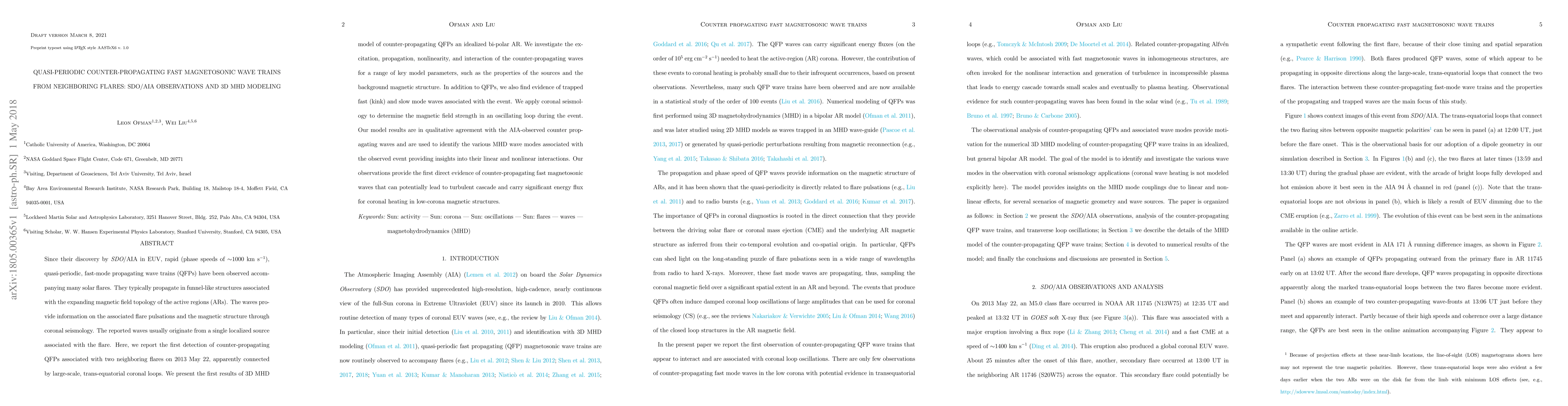The paper presents an advanced 3D MHD model for simulating and analyzing counter-propagating QFPs from neighboring solar flares, providing insights into their excitation, propagation, and interaction.