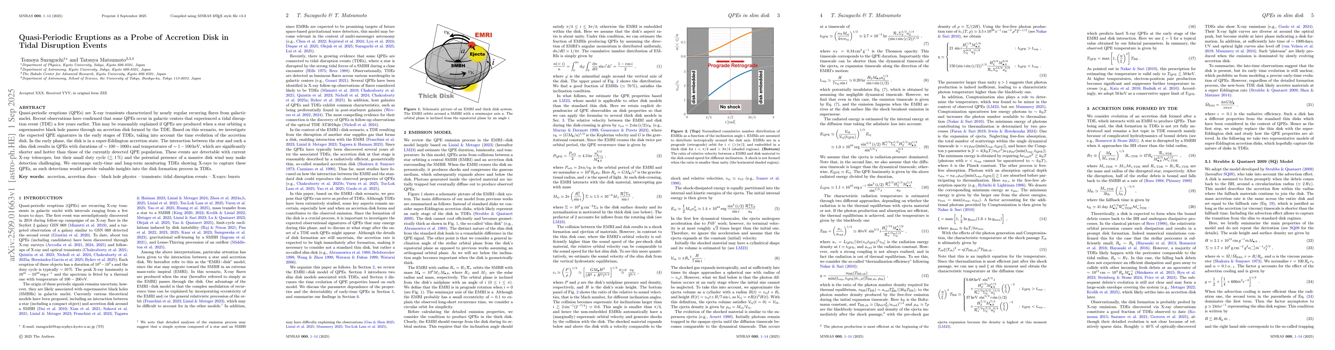 Quasi-periodic eruptions (QPEs) are X-ray transients characterized by nearly regular recurring flares from galactic nuclei. Recent observations have confirmed that some QPEs occur in galactic centers that experienced a tidal disruption event (TDE) a few years earlier. This may be reasonably explained if QPEs are produced when a star orbiting a supermassive black hole passes through an accretion disk formed by the TDE. Based on this scenario, we investigate the expected QPE signatures in the early stages of TDEs, taking into account the time evolution of the accretion disk. In the early phase, the disk is in a super-Eddington accretion state. The interaction between the star and such a slim disk results in QPEs with durations of $\sim 100-1000\,{\rm s}$ and temperatures of $\sim 1-100\,{\rm keV}$, which are significantly shorter and hotter than those of the currently detected QPE population. These events are detectable with current X-ray telescopes, but their small duty cycle ($\lesssim1\,\%$) and the potential presence of a massive disk wind may make detection challenging. We encourage early-time and long-term monitoring TDEs showing X-rays to capture these QPEs, as such detections would provide valuable insights into the disk formation process in TDEs.